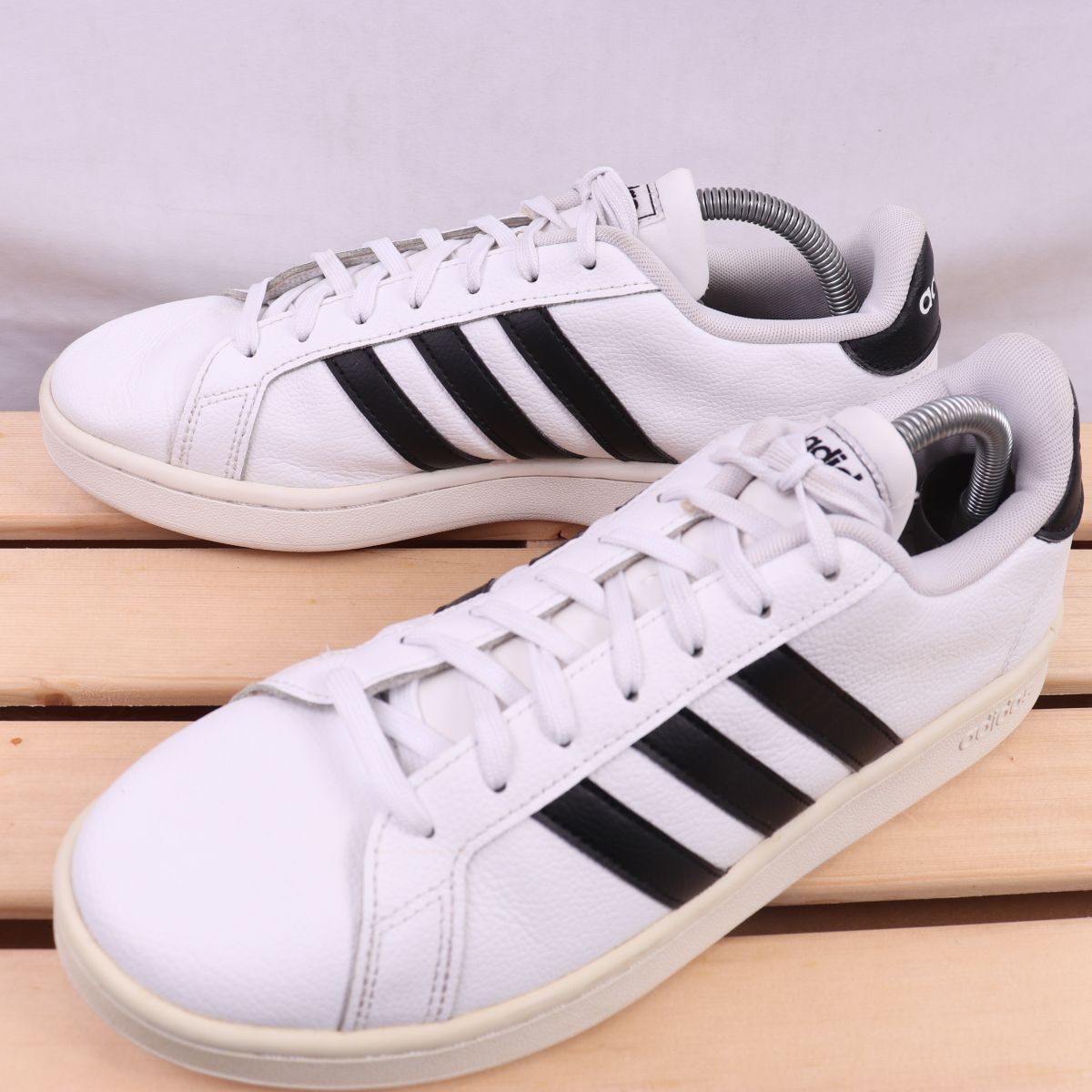 z776 アディダス グランドコート US9 27.0cm/白 ホワイト 黒 adidas GRAND COURT メンズ スニーカー 中古
