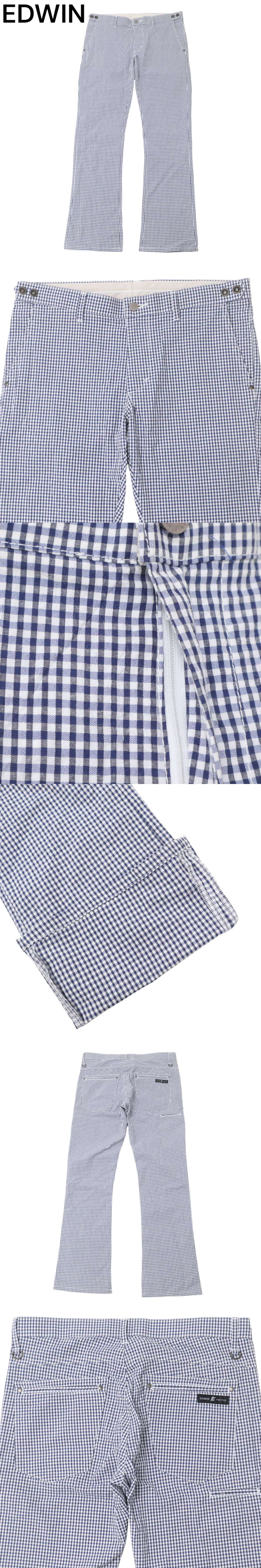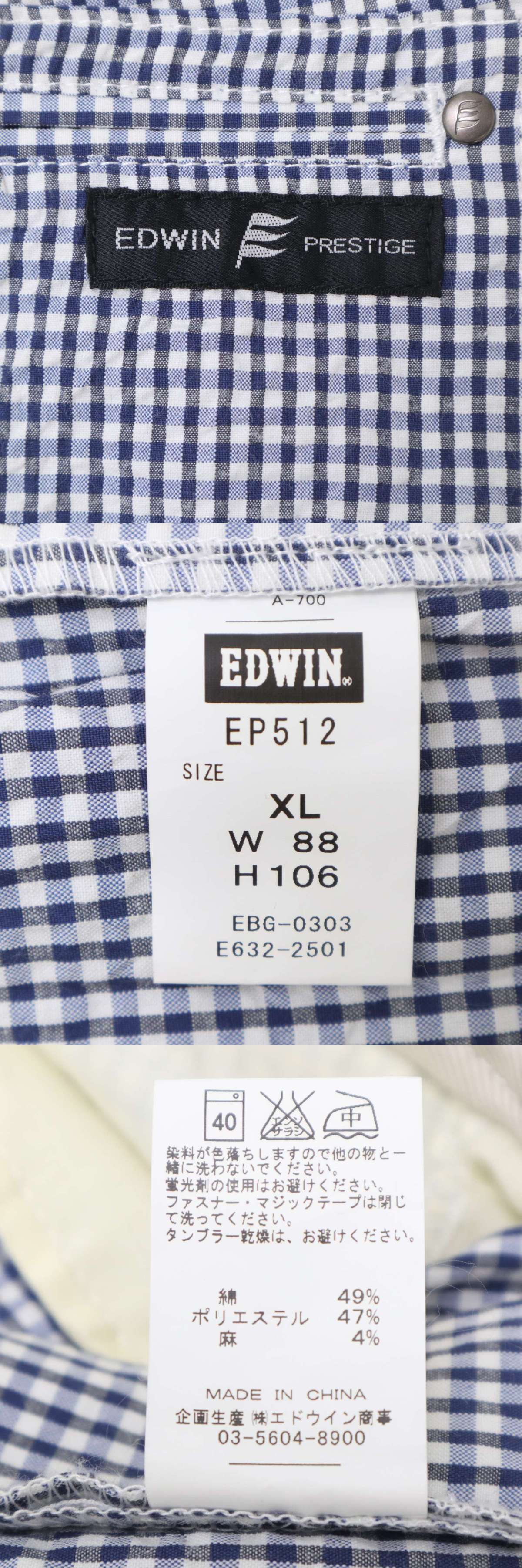 EDWIN PRESTIGE エドウィン EP512 春夏★ 麻混 チェック シューカット スラックス パンツ Sz.XL メンズ 大きいサイズ ゴルフ