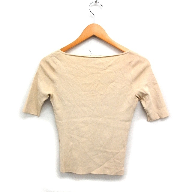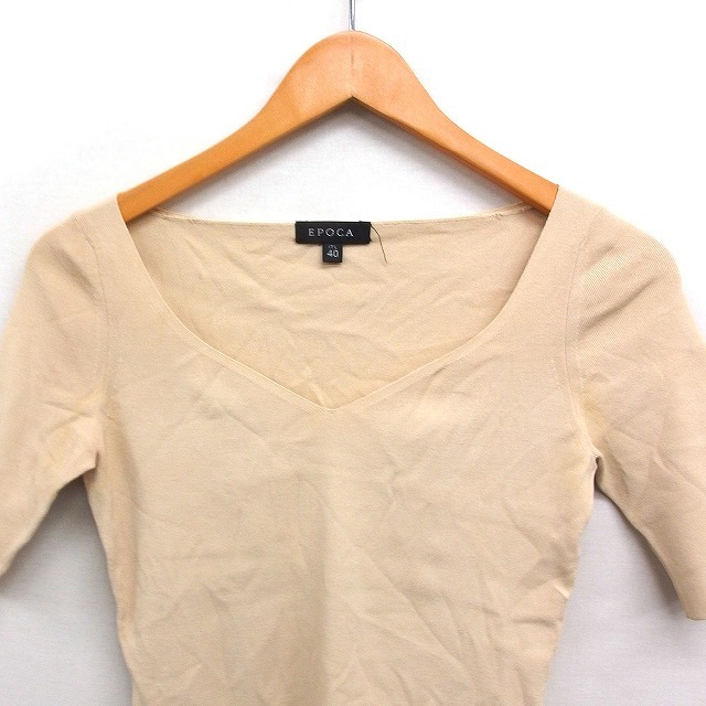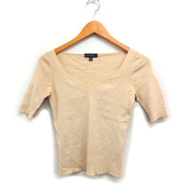 エポカ EPOCA ペンタゴンネック ニット カットソー 半袖 無地 40 ベージュ /FT23 レディース