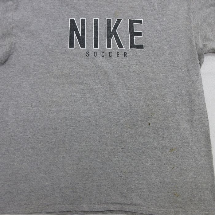 【商品名】 XL★古着 ナイキ NIKE 半袖 ビンテージ Tシャツ メンズ 00年代 00s ビッグロゴ サッカー 大きいサイズ クルーネック グレー 霜降り