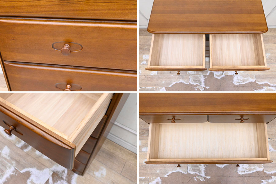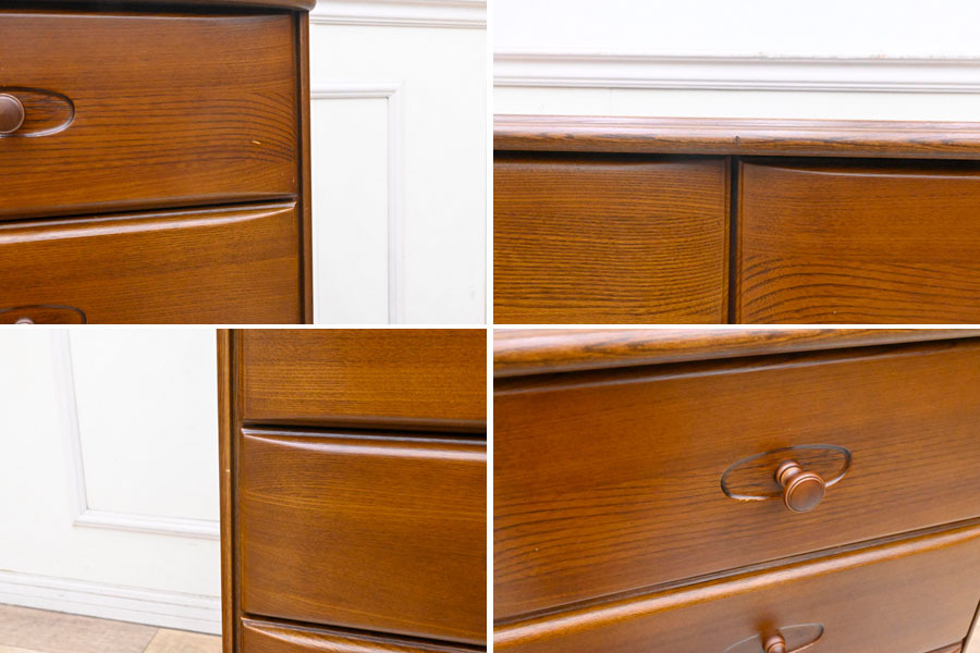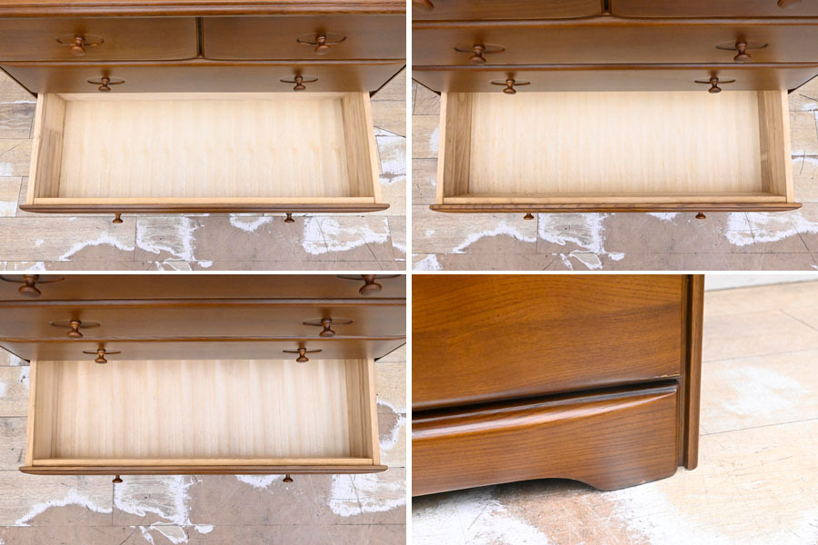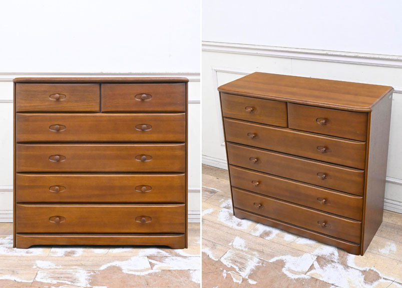 ----------------------------------------------------------------------------------------- ●送料や注意事項は必ずご確認下さい。落札後にトラブルになるケースが増えております。● ◆コンディションは写真・文章にて記載して有りますが、全てのキズの写真は掲載致しておりません。大きなダメージを除き見落とし、記載漏れが有る事はご了承下さい。 ◆当サイトにて出品する商品は多種多彩で、当方商品知識の無い物も多数ありますので落札後の質問やメンテナンス等にはお答えできません。 ◆入札された時点で、画像、文章をご理解していただいたものと判断させていただきます。不明な点は前もってQ&Aからお願い致します。入札後の質問やお電話等でのキャンセルは一切受け付け致しません。 ◆商品説明に「ノークレーム」と記載しているものに関しては、如何なる状況で届いても保証致しません。詳しくは注意事項の「商品到着後について」の最後に記載しておりますのでご確認下さい。 ---------------------------------------------------------------------------------------- 高級家具の老舗、マルニの作り良いチェスト、中古品の出品です。 美しい独特の木目は良質材を使用している証です。 細部までシッカリと作り込まれたお品ですのでお見逃しの無いように。 幅86.5 奥38 高83.5cm 【コンディション】 前面塗装剥がれ、引出内シミ、その他キズ、ダコン、ヨゴレ等有ります。 | ||