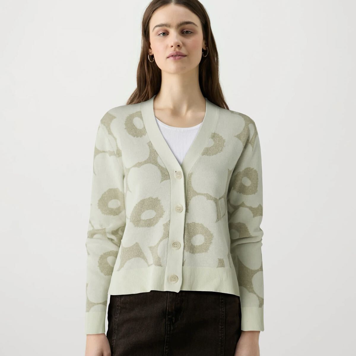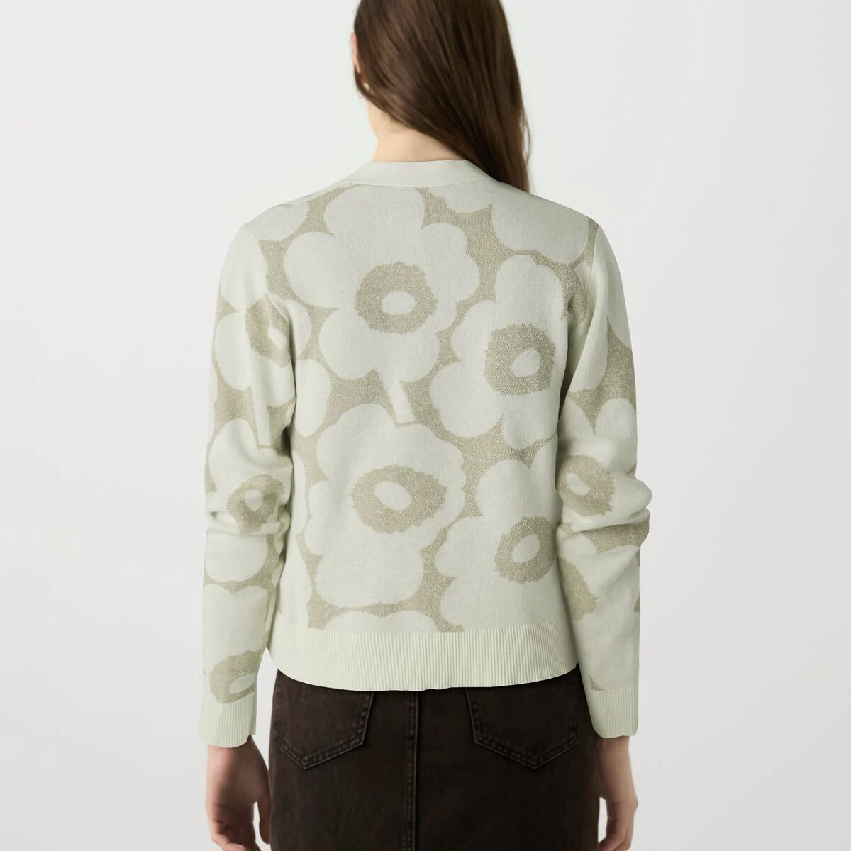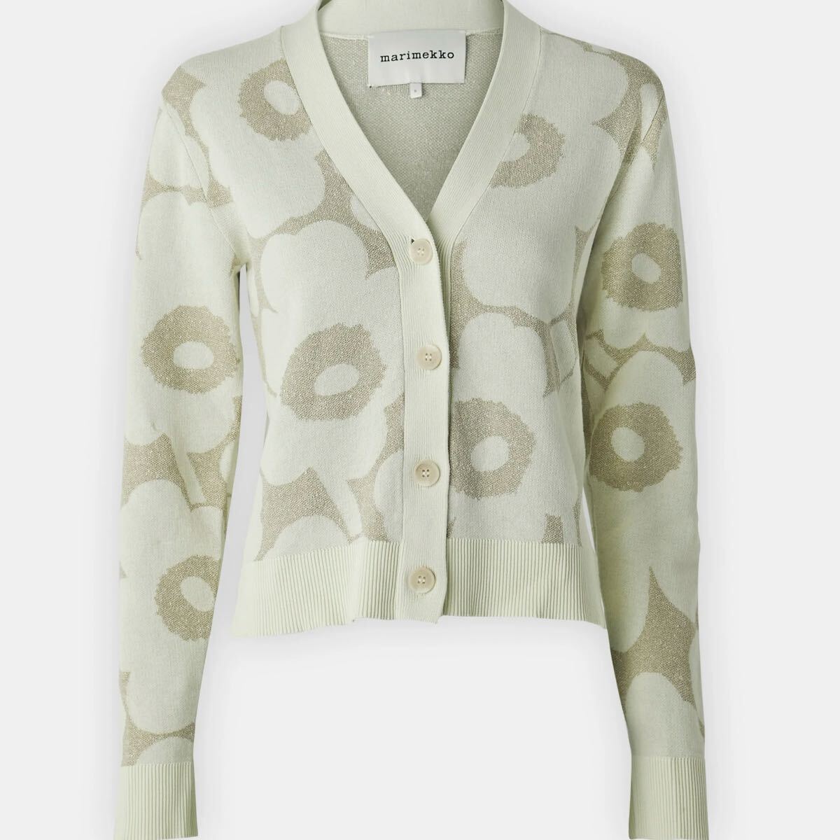 Unikko柄が華やかなデザインのニットカーディガンリネン混合の生地で、春夏シーズンにぴったりなさわやかな肌触りも魅力。袖口と裾のリブがアクセントのコンパクトなシルエット。Vネック、フロントボタンでいつもの着こなしにさっとプラスしてスタイリッシュな着こなしが完成するアイテムです。