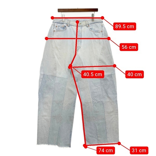 実寸法 | ボトムス実寸 ウエスト:89.5cm 股上:40.5cm 股下:74cm もも幅:40cm 裾幅:31cm |