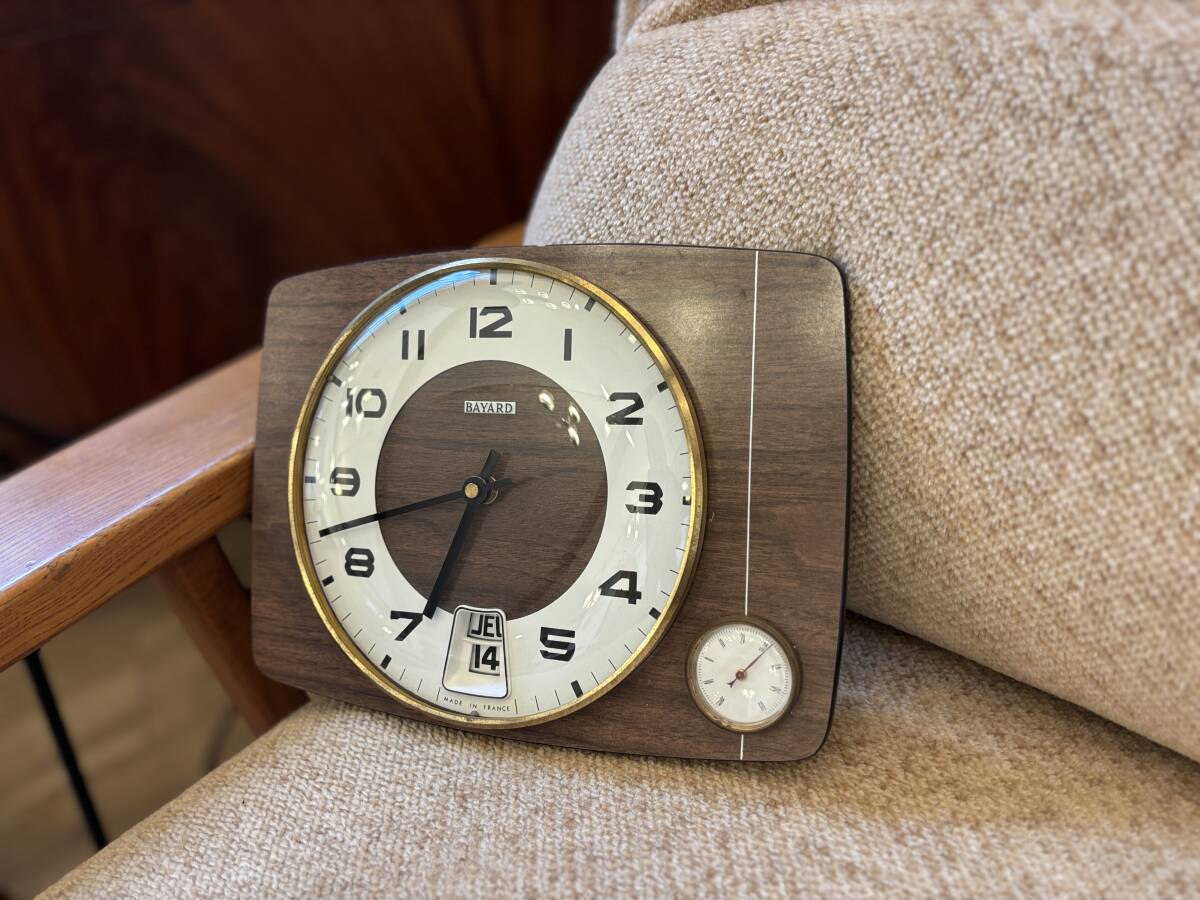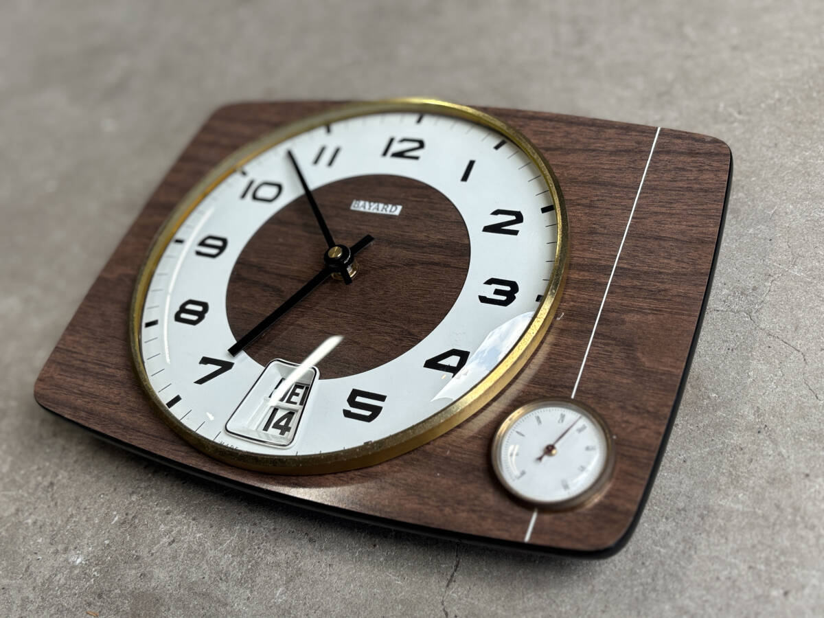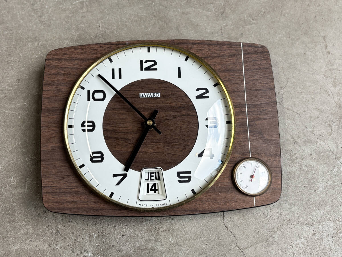 フランス ヴィンテージ BAYARD ウォールクロック/1970年代/木目/サンバーストクロック/アールデコ/アンティーク/ミッドセンチュリー