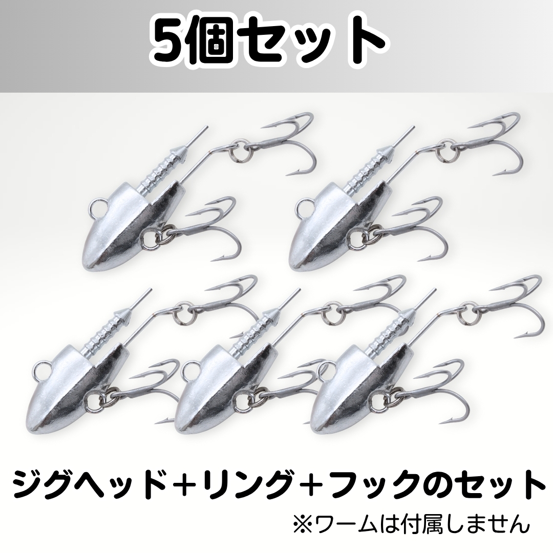 ☆こちらはジグヘッド×5個 スプリットリング×12個(予備含む) トレブルフック×10本のセットでの出品となります。