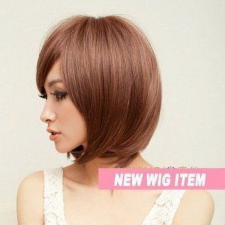 ライトブラウン 前髪斜め さらさら ボブ フルウィッグ ウィッグ 自然 医療用 かつら ふんわり 高品質 耐熱 斜め 軽い WIG レディース