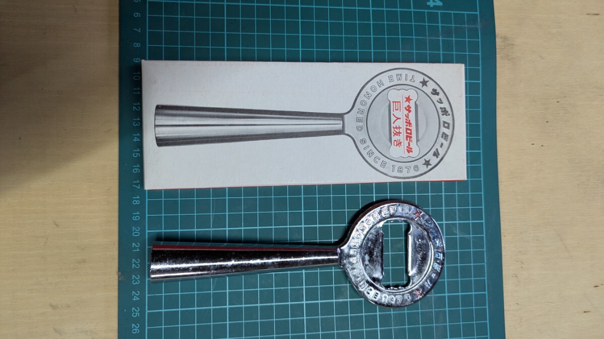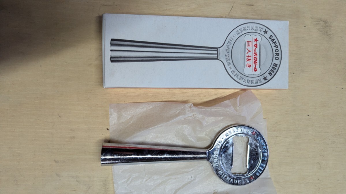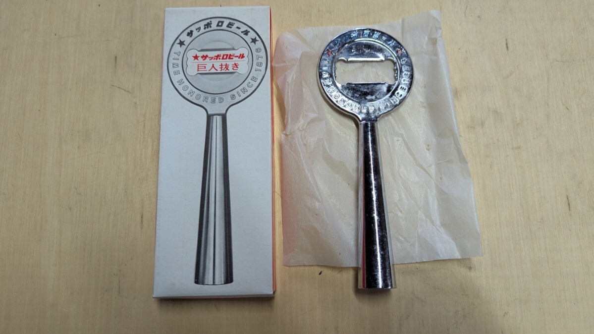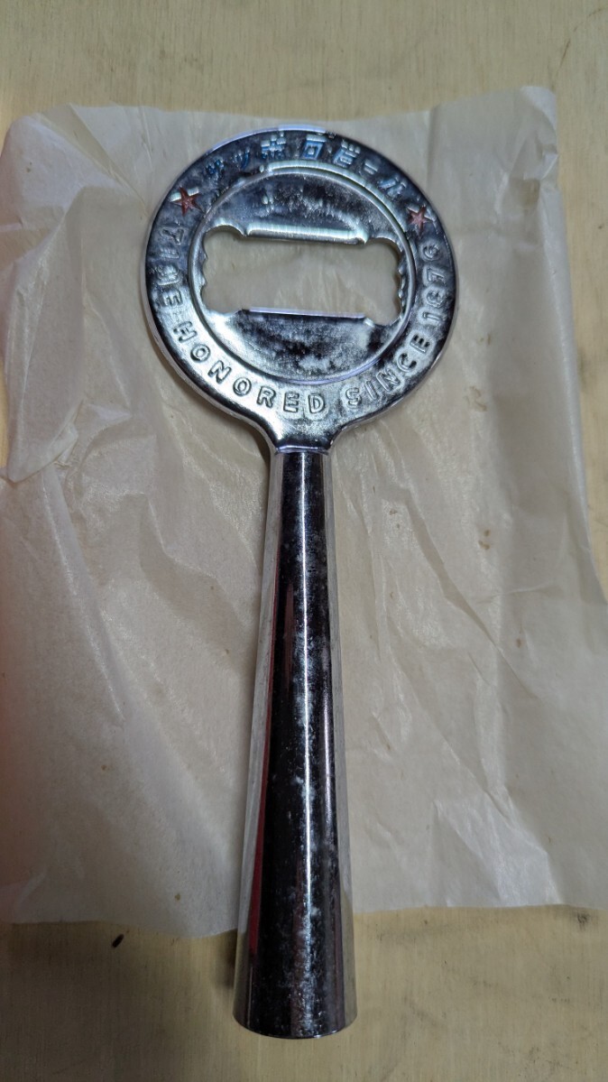 サッポロビール 栓抜き 約19センチ 長期保管品で傷汚れ、錆等有ります。箱にシミ、傷、汚れ等有ります画像にて判断現状ノークレームをご理解頂ける方宜しくお願いしますあ