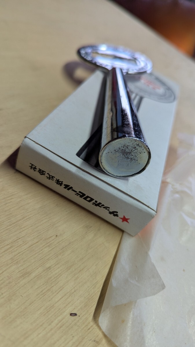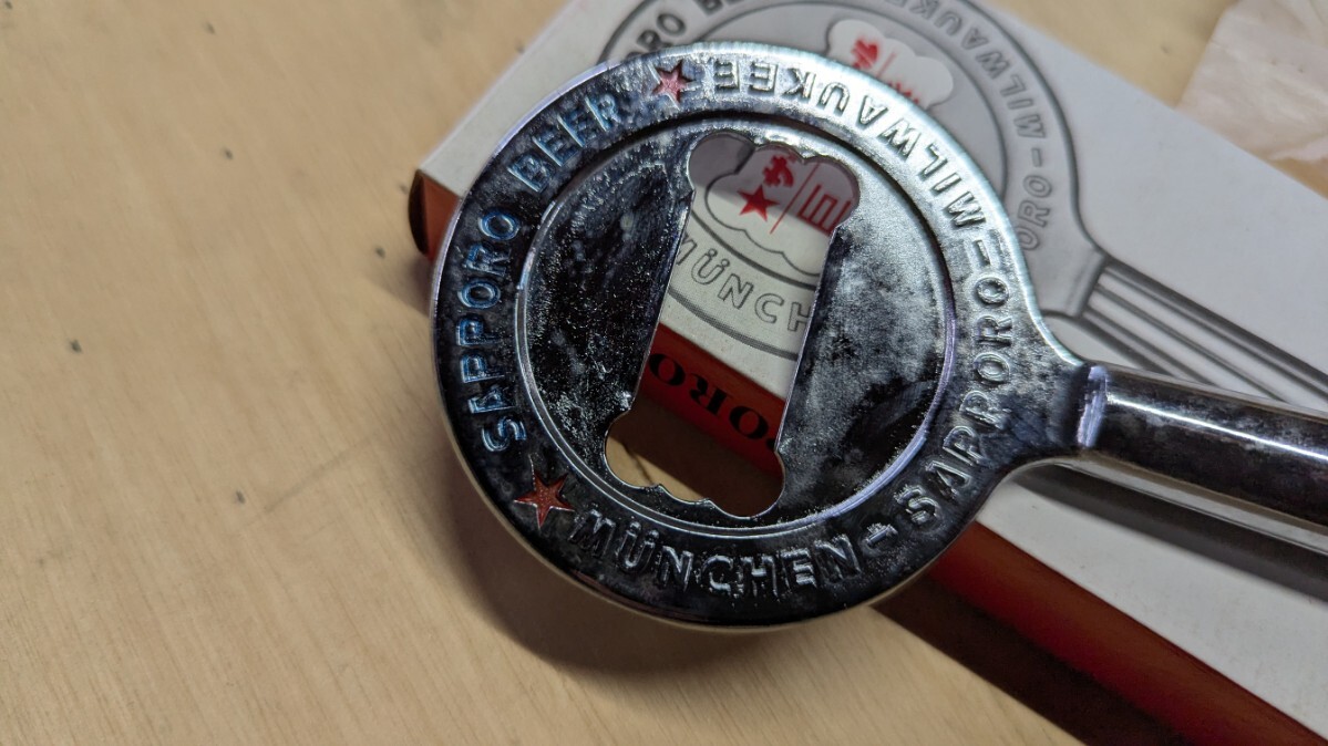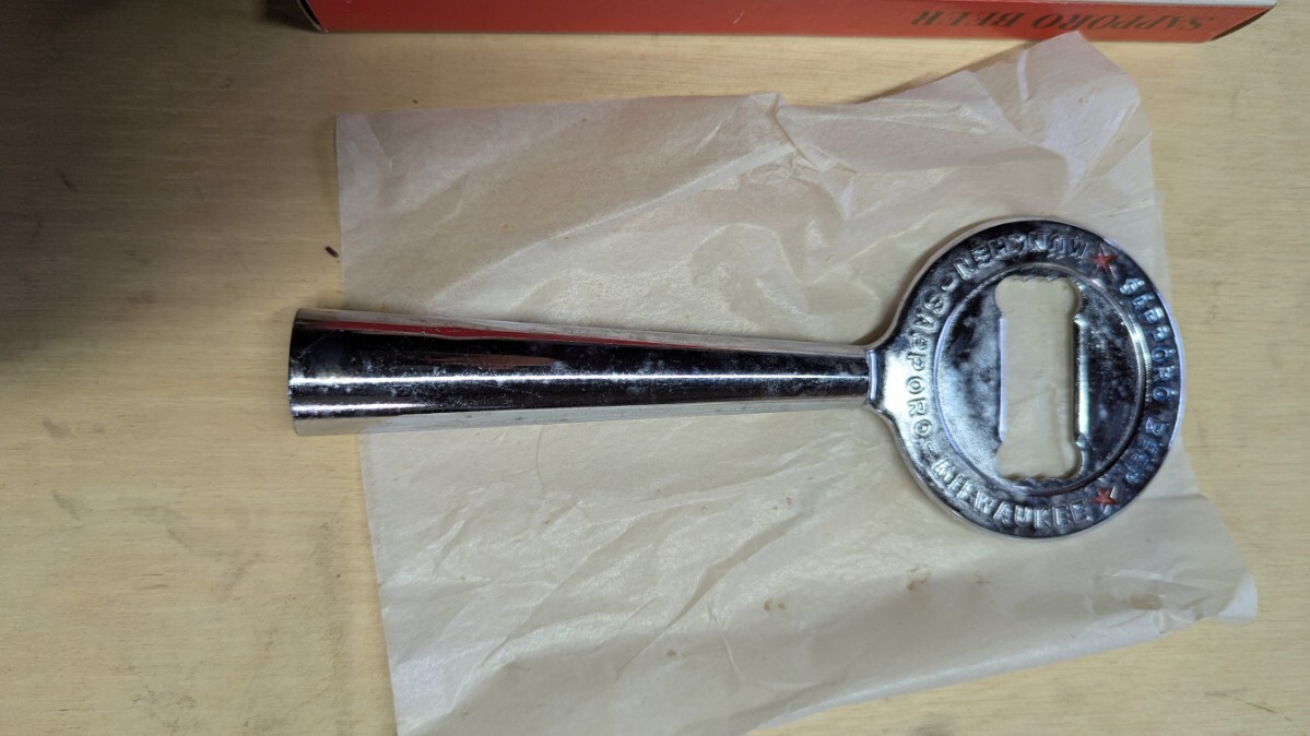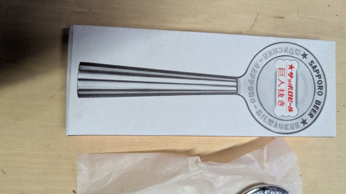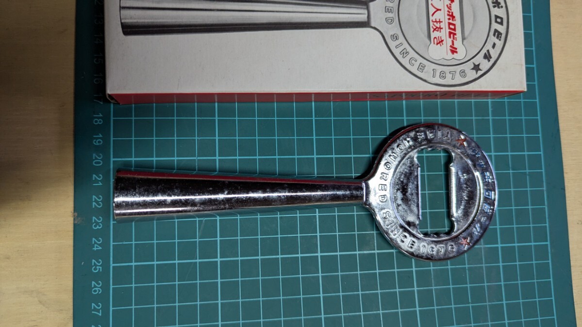 サッポロビール 栓抜き 約19センチ 長期保管品で傷汚れ、錆等有ります。箱にシミ、傷、汚れ等有ります画像にて判断現状ノークレームをご理解頂ける方宜しくお願いしますあ
