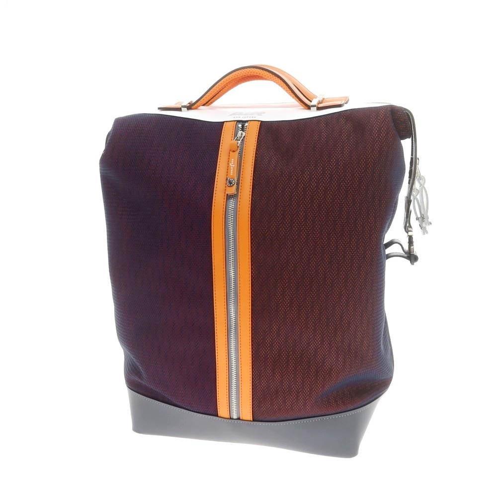 オレンジのメッシュ生地の上にネイビーのメッシュ生地を重ね、負荷がかかる部分を様々なレザーで仕上げたバッグです。ボストンにも似た大容量のバッグになりまして、大振りなサイズながら軽量な作りになっているのも嬉しいポイントです。荷物量にあわせてサイドのストラップで調整できるデザインになりまして、スポーティーな雰囲気でありながら高級感もしっかりと備えたバッグになっています。