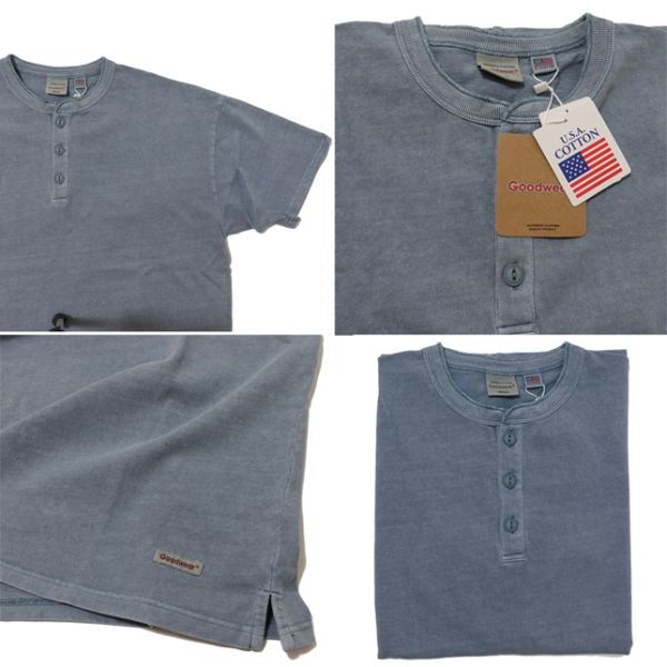 グッドウェア Tシャツ Lサイズ 半袖 メンズ USAコットン 製品染め ヘンリーネック BIG 無地 綿 Goodwear 2W7-15205 スモーキーブルー74