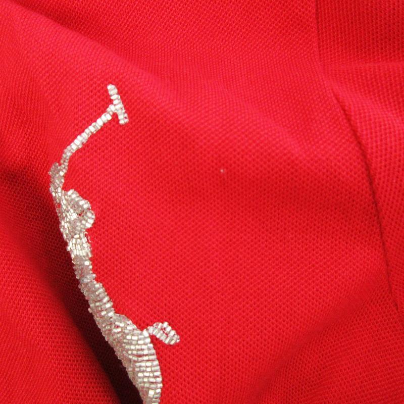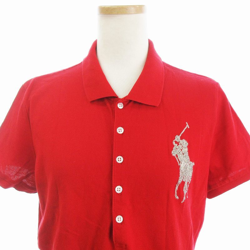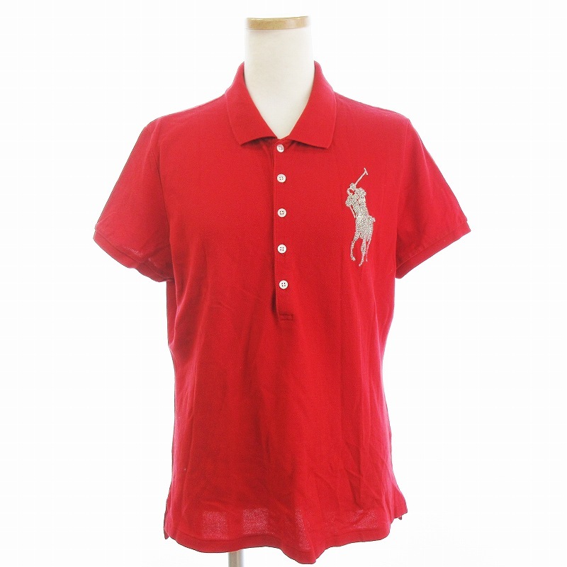 ポロ ラルフローレン POLO RALPH LAUREN ポロシャツ カットソー 半袖 鹿の子 ビーズ ポニー 赤 レッド 7f レディース