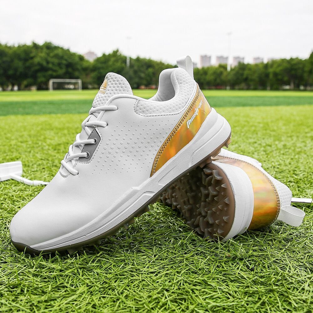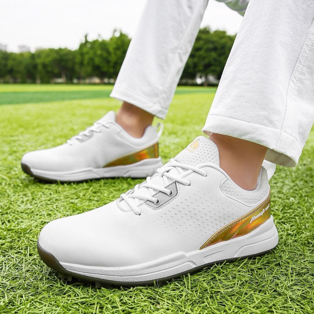 GRF-2001/白GOLD/45/高級品◆GOLF靴男女兼用 絶賛 防滑 耐磨 撥水 通気性 強い弾力性 メンズ ゴルフシューズ 運動靴 スニーカー フィッ