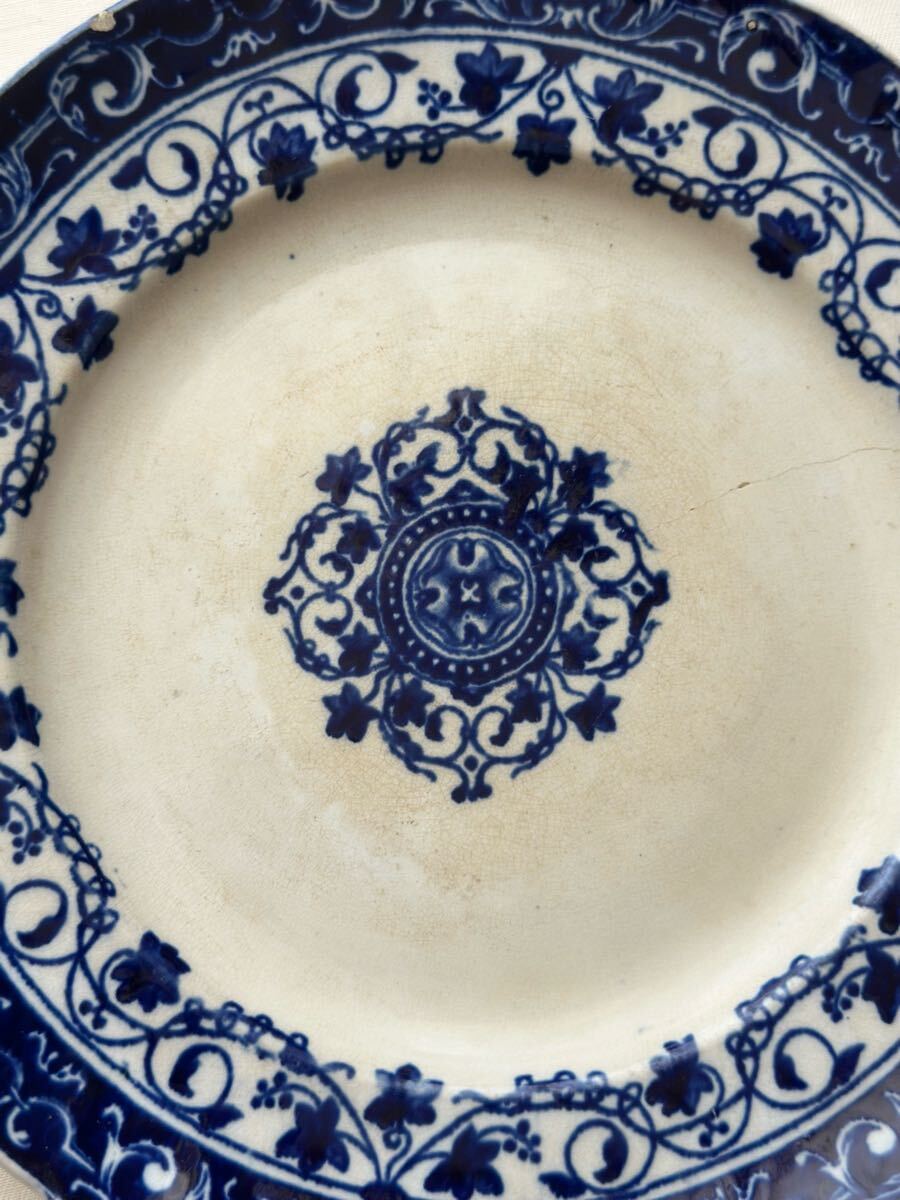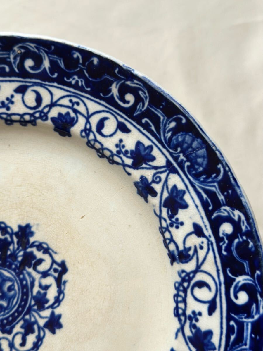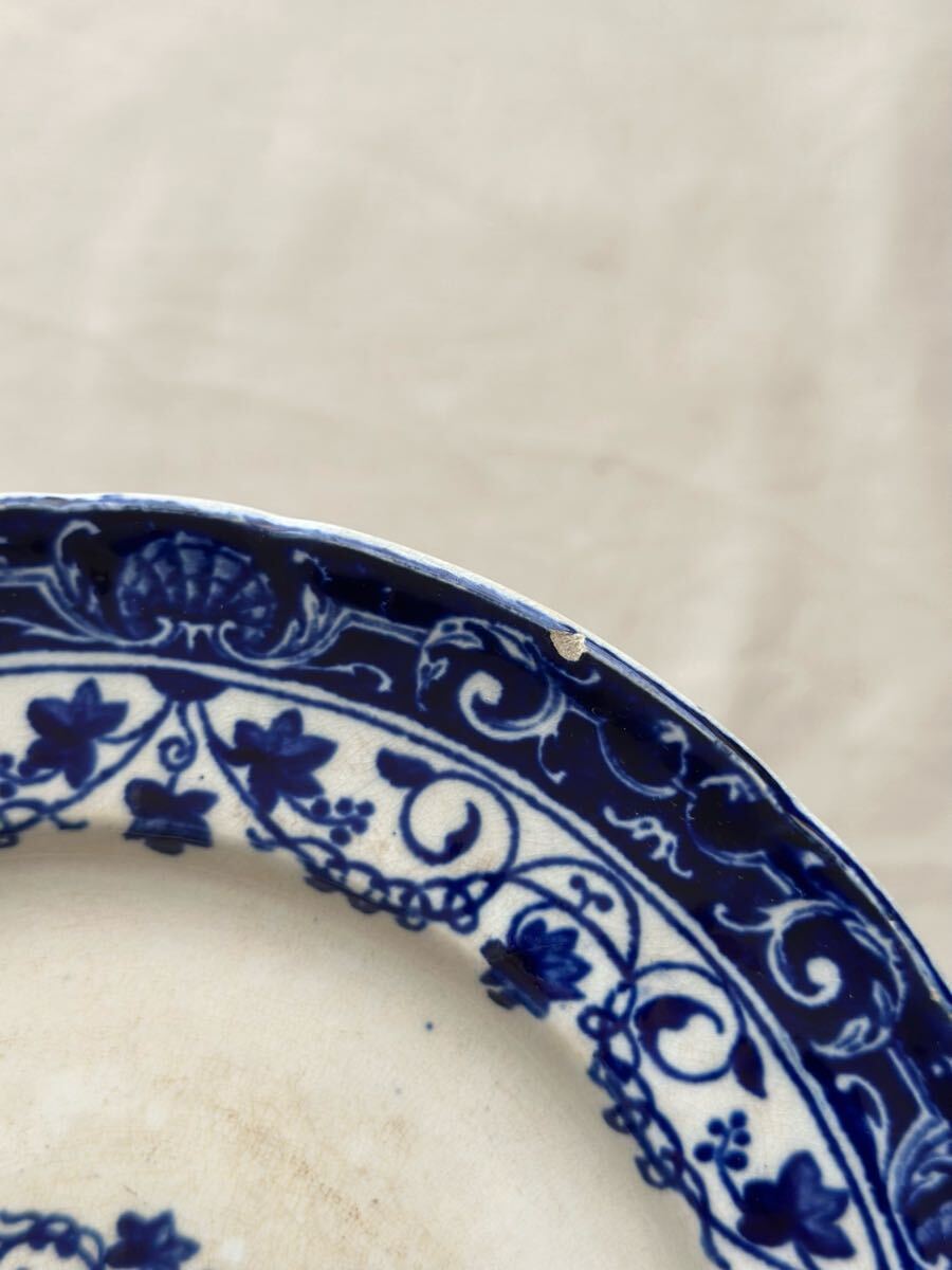 金継ぎ用 フランス アンティーク 皿 Jules Vieillard de BORDEAUX ボルドー / “LOUIS XV” ブルーカマイユの平皿プレート 蚤の市