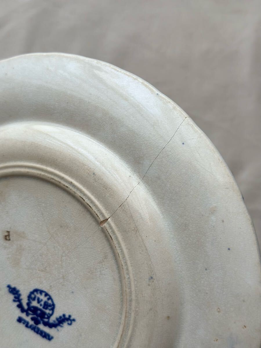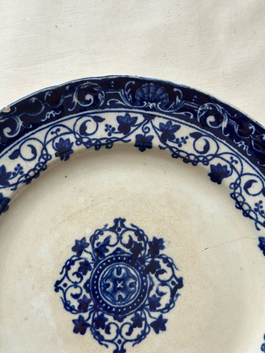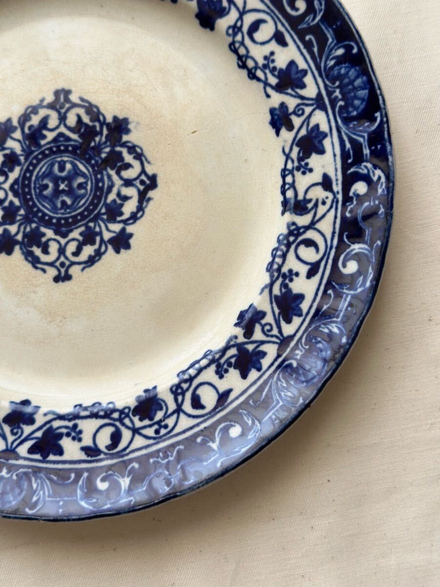 金継ぎ用 フランス アンティーク 皿 Jules Vieillard de BORDEAUX ボルドー / “LOUIS XV” ブルーカマイユの平皿プレート 蚤の市