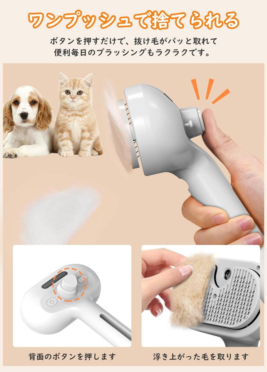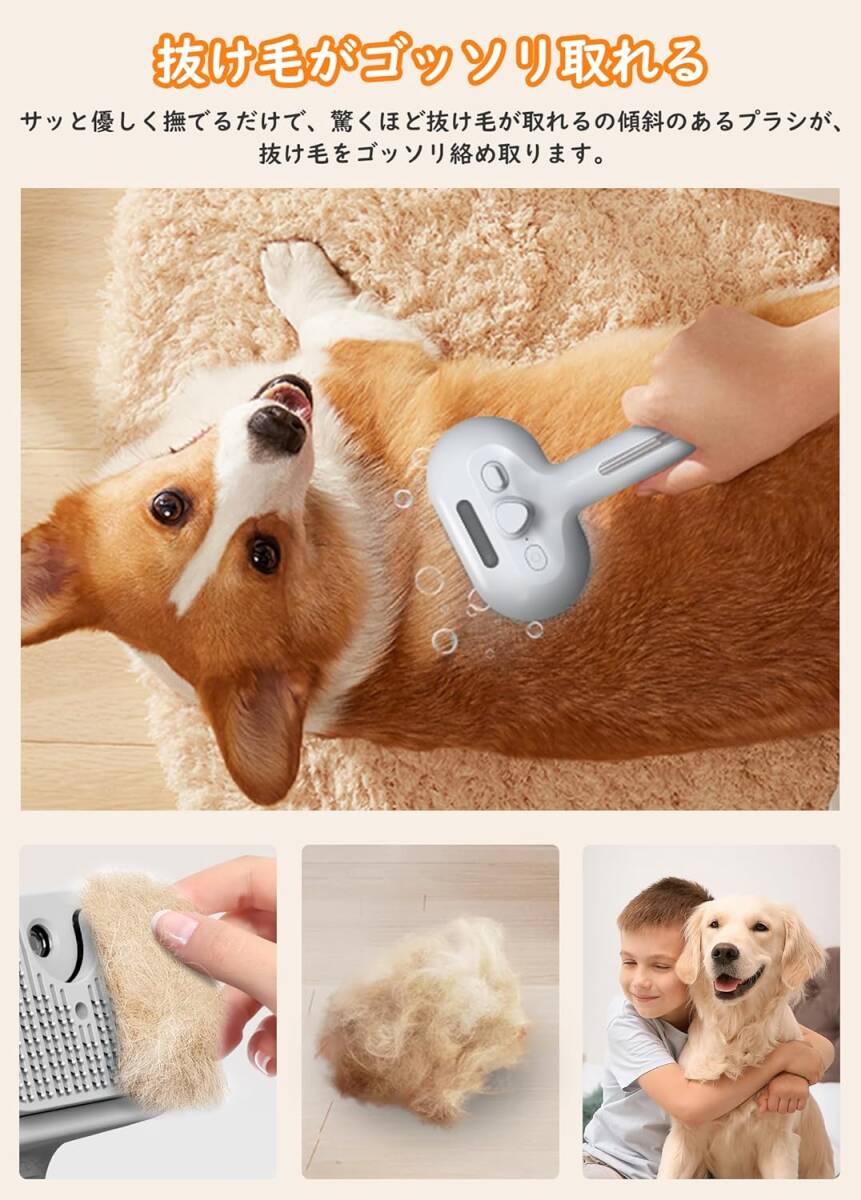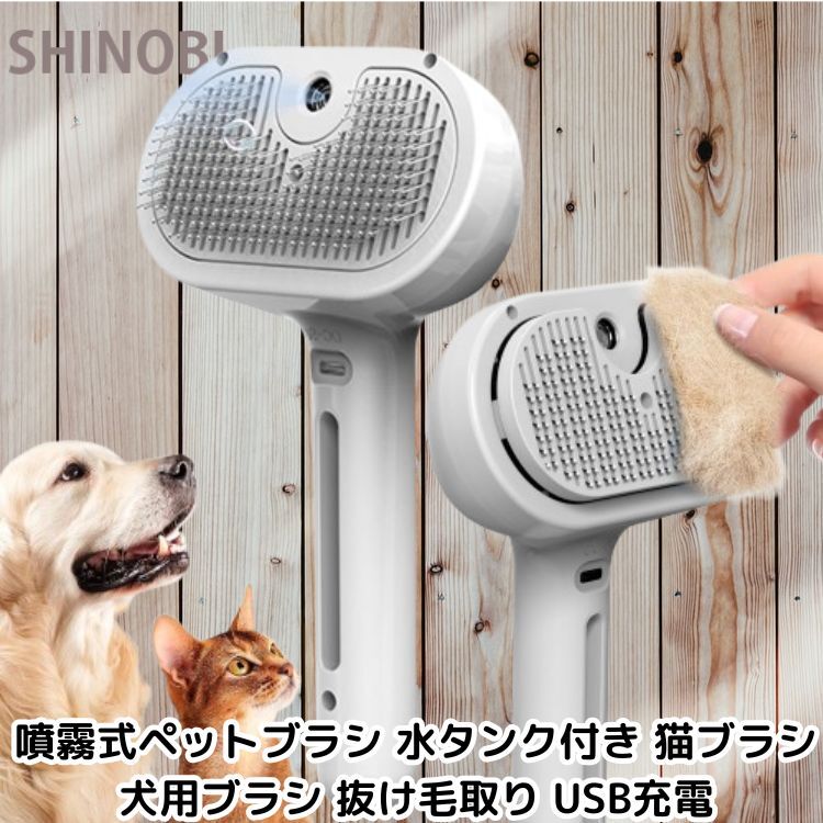 USB充電式 噴霧で体毛滑らか! ペット用ブラシ 水タンク付き 250mAh 猫ブラシ 犬ブラシ ワンプッシュタイプ 抜け毛取り (ホワイト)