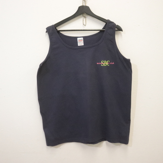 商品名 J786 90sビンテージ ANVIL アンビル タンクトップ■1990年代製 表記XLサイズ レディース ネイビー 刺繍 アメカジ ストリート 古着 古着卸