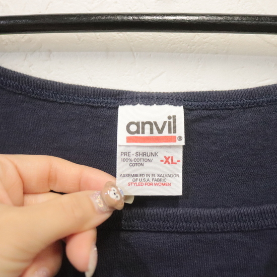 J786 90sビンテージ ANVIL アンビル タンクトップ■1990年代製 表記XLサイズ レディース ネイビー 刺繍 アメカジ ストリート 古着 古着卸
