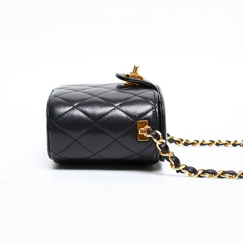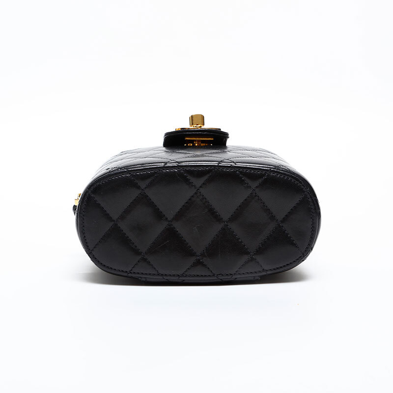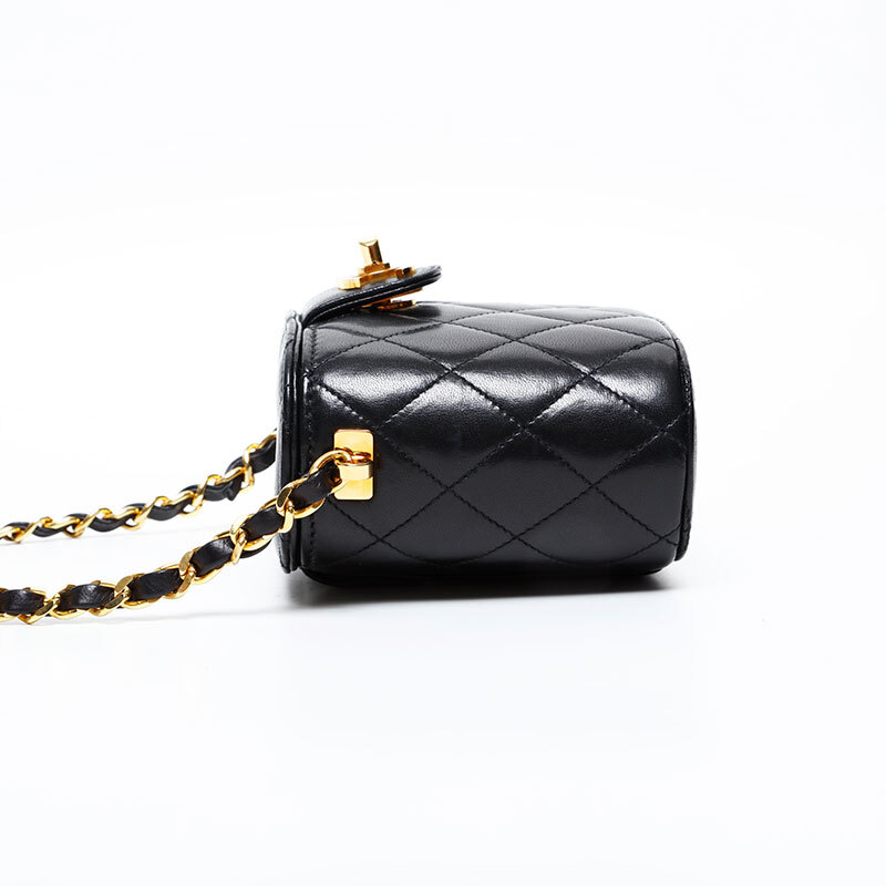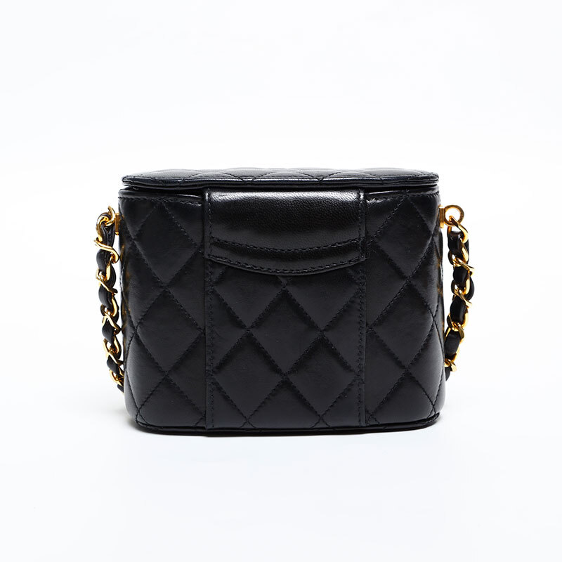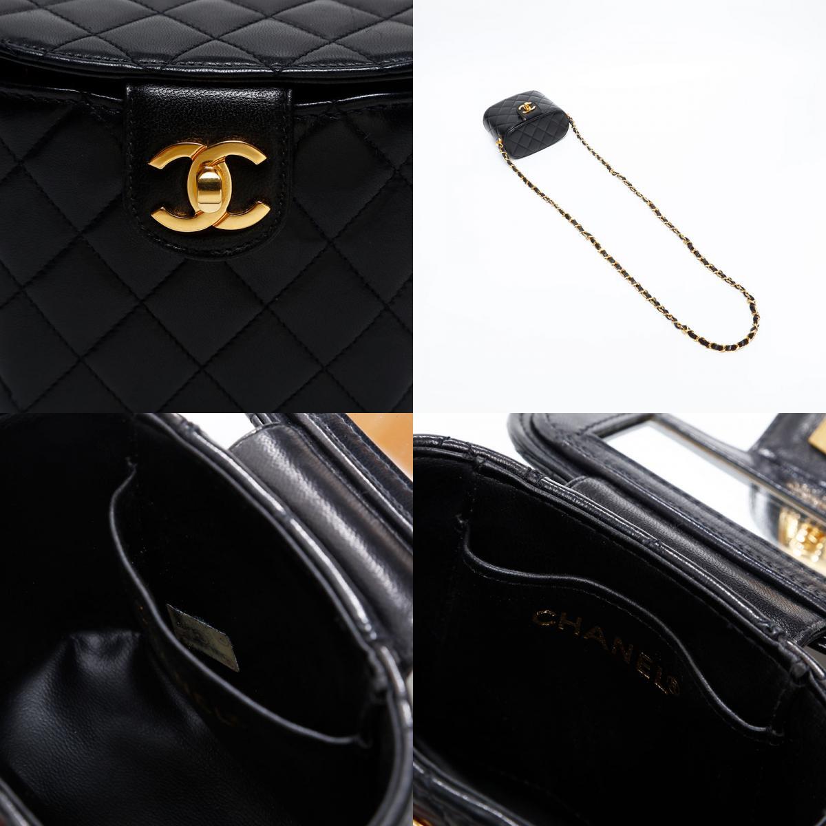 極美品 CHANEL 2番台 1991-1994 ラムスキン チェーン バニティ ショルダーバッグ ブラック