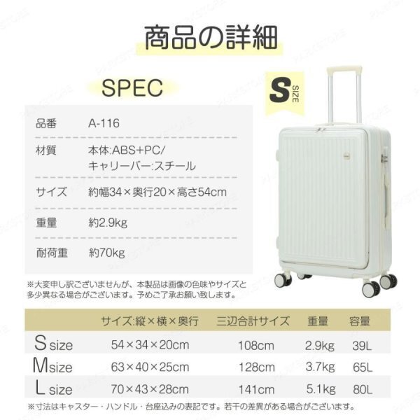 ※Sサイズは100席以上の国内線機内持込可サイズ