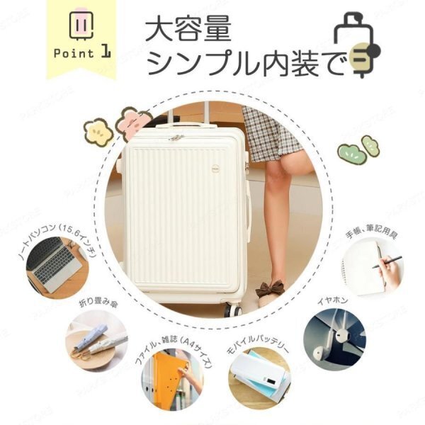 前開きスーツケース 機内持ち込み キャリーケース Sサイズ フロントオープン- 3日用キャリーバッグ おしゃれ 軽量 大容量 海外旅行