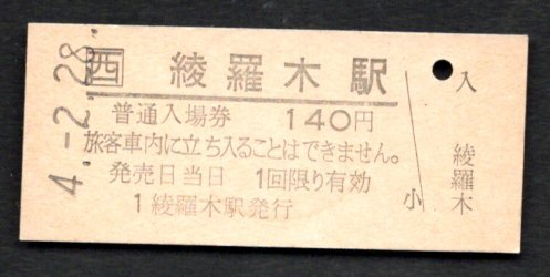 (JR山陰本線)綾羅木駅140円券
