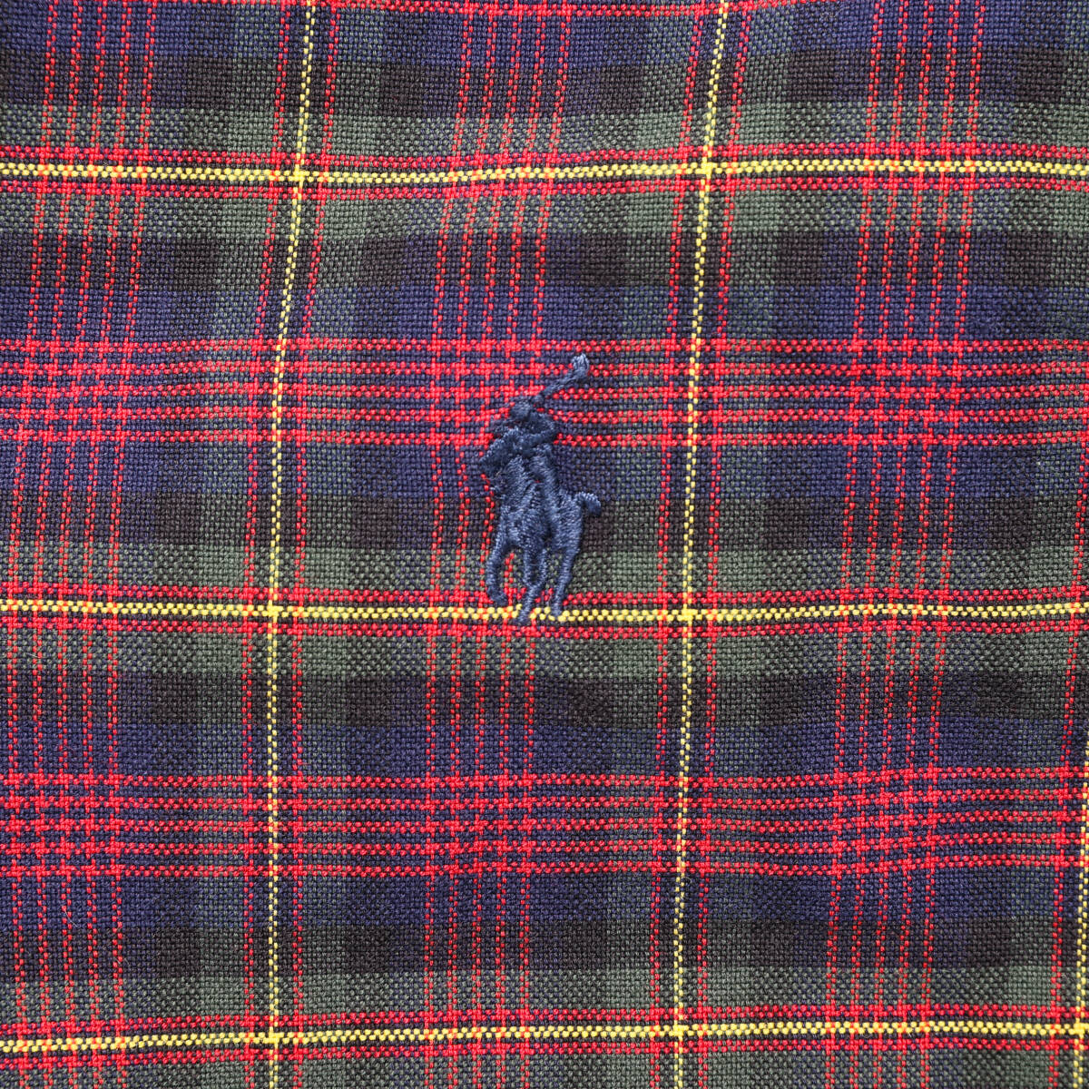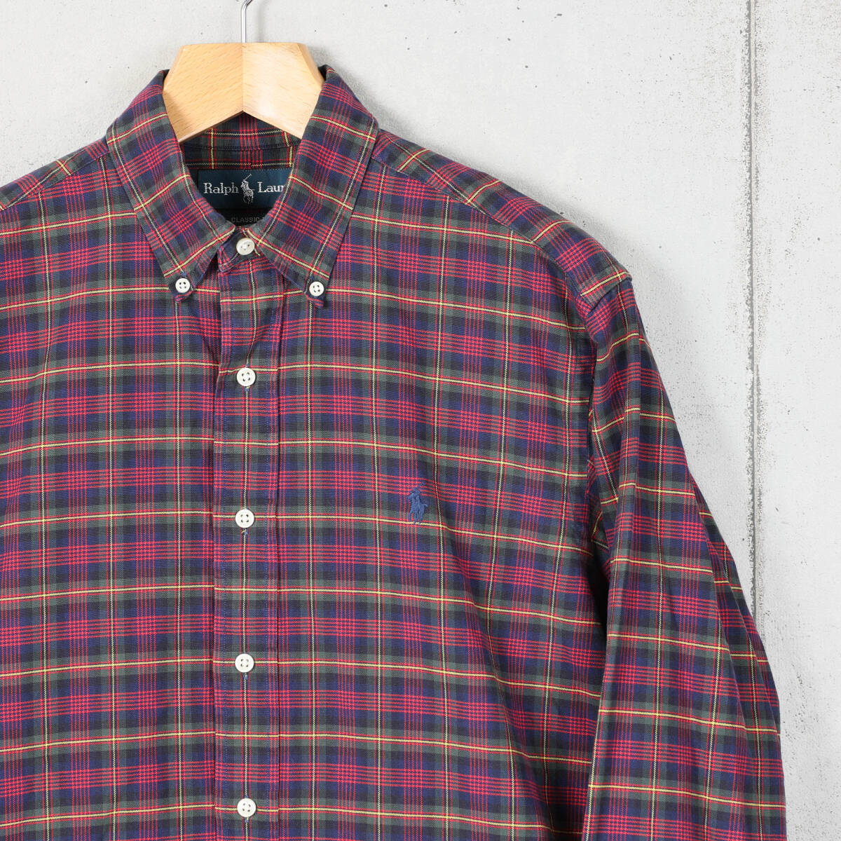 【ブランド】 Polo Ralph Lauren / ポロラルフローレン 【アイテム】 CLASSIC FIT オックスフォード チェック ボタンダウンシャツ 【商品説明】 アメリカで購入しました、ラルフローレンのオックスフォード素材が使用されたチェック柄のボタンダウンシャツになります。 【カラー】 ネイビー×グリーン×レッド 【コンディション】 使用に伴う色落ちや擦れなどがあります。 【サイズ】 サイズ:M 身幅:60cm 肩幅:48cm 着丈:78cm 袖丈:64cm | |||