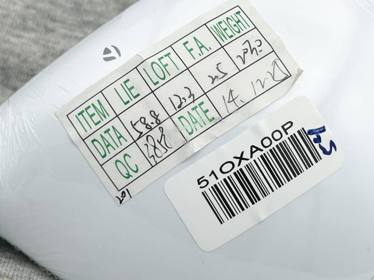 ロフト10.5°(リアルロフト12.3°) ライ角 58.8° F.A(フェースアングル)2.5°OPEN ヘッド重量196g(スリーブなし、ウェイト、シュリンク込み実測値)