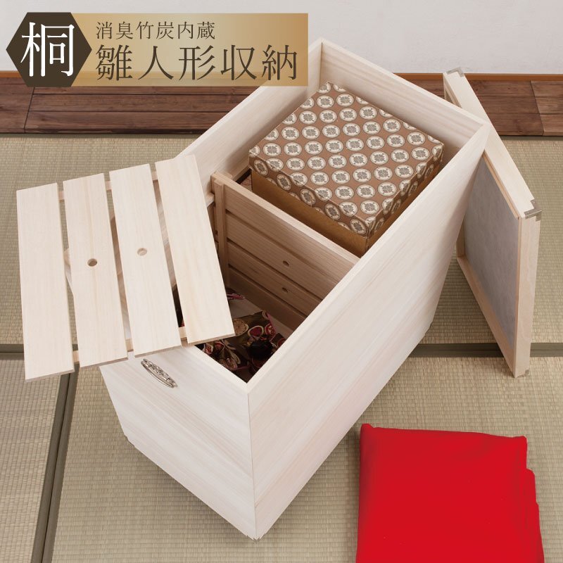■商品の仕様/本体:天然木(桐材)、天板・底板:天然木桐化粧板、蓋裏面・底面:竹炭シート内蔵不織布