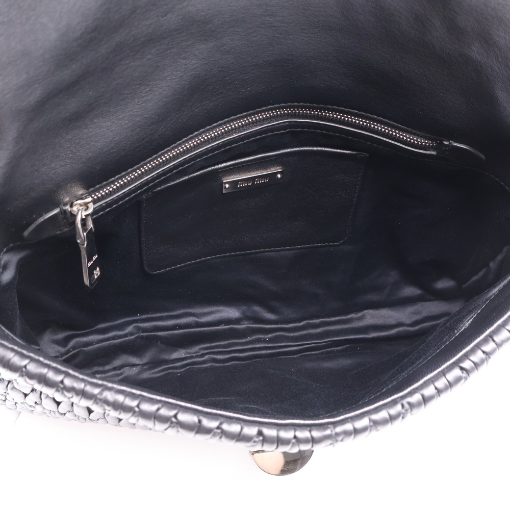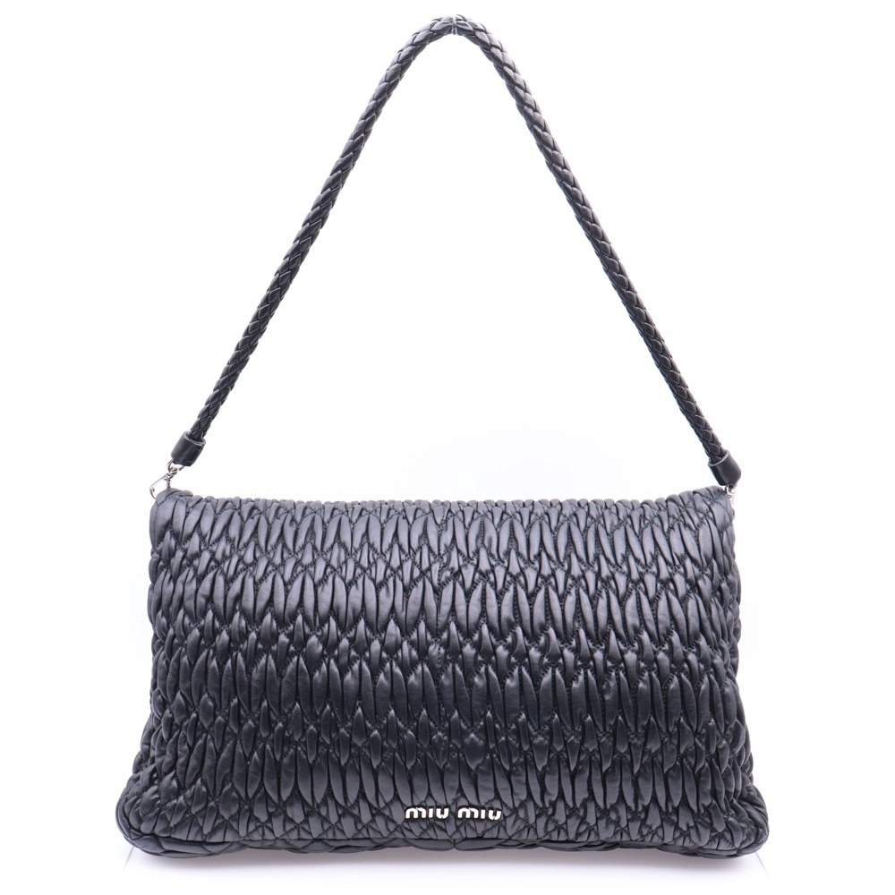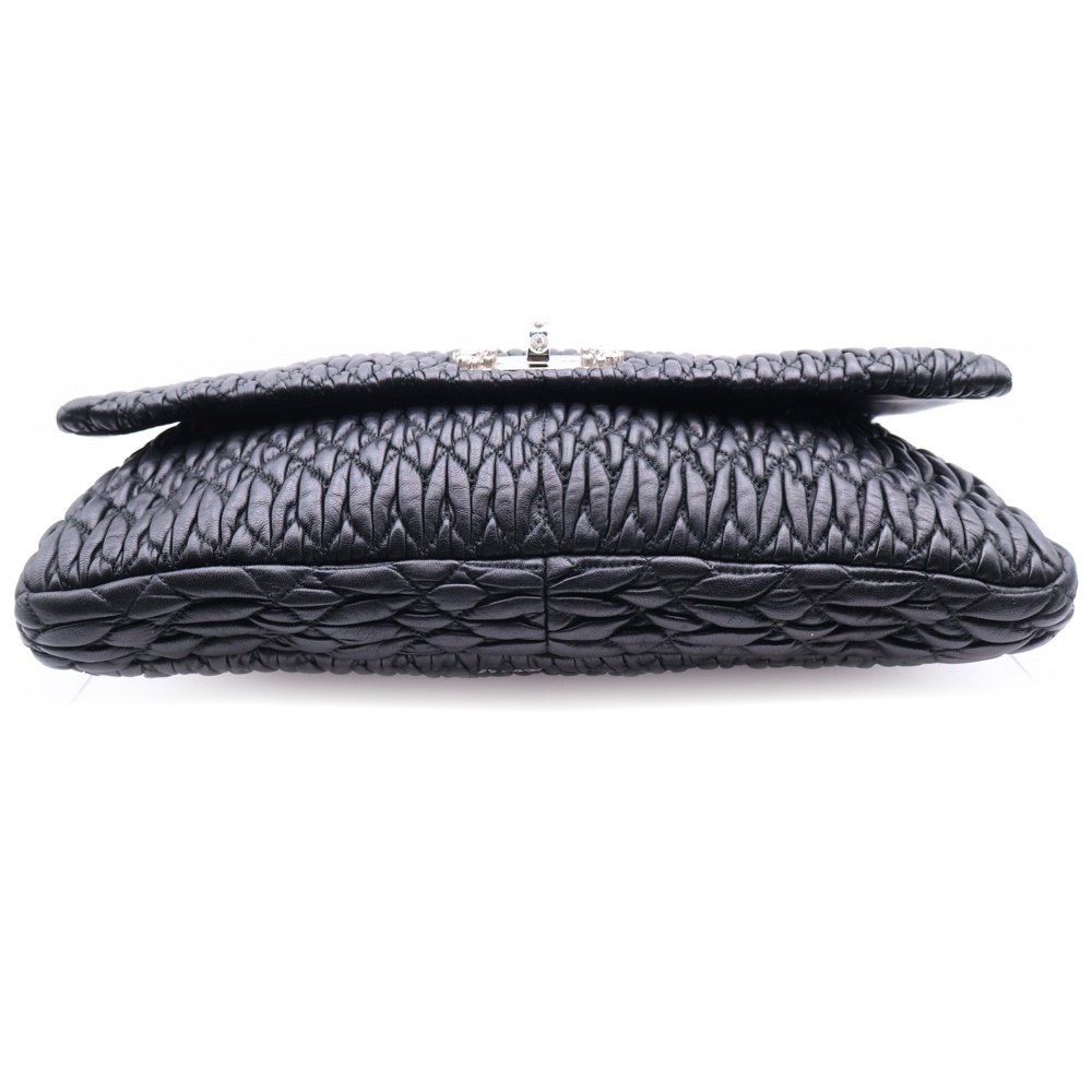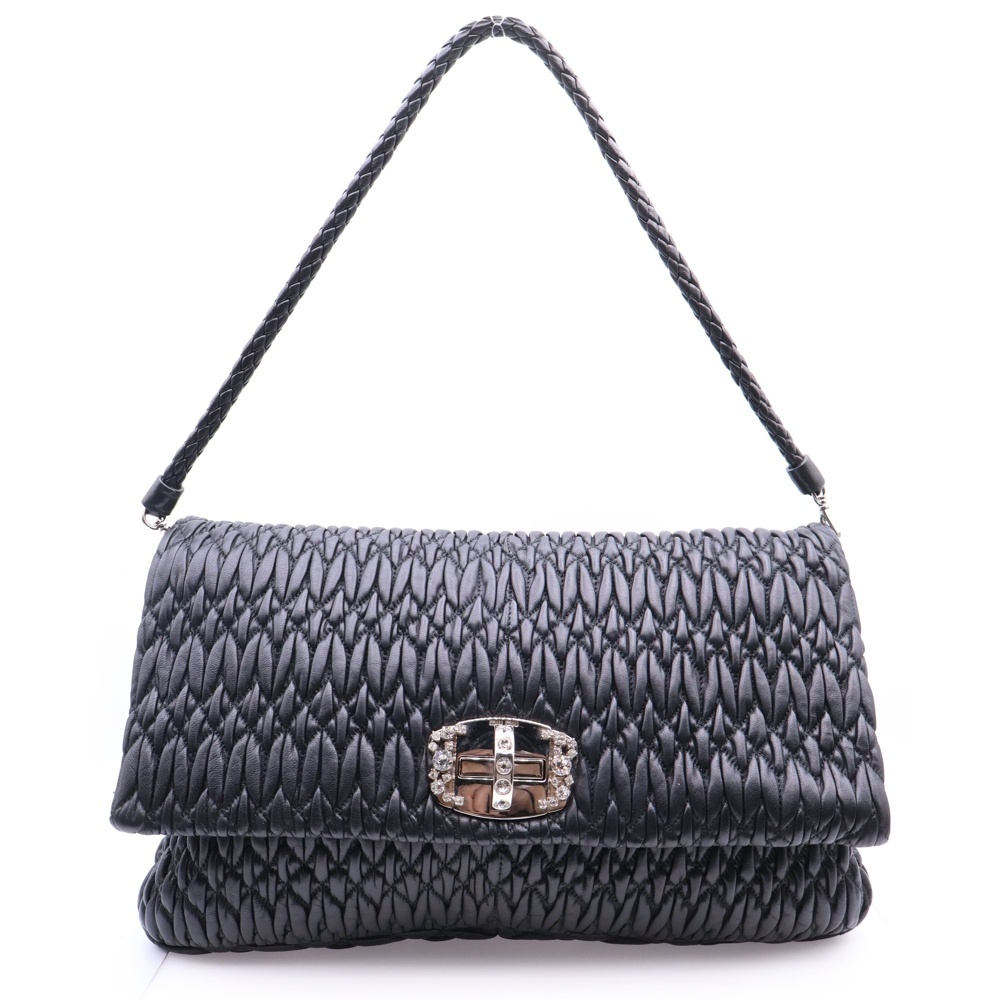 miumiu ミュウミュウ ナッパ クリスタル ショルダーバッグ チェーンバッグ ブラック シルバー金具 レザー