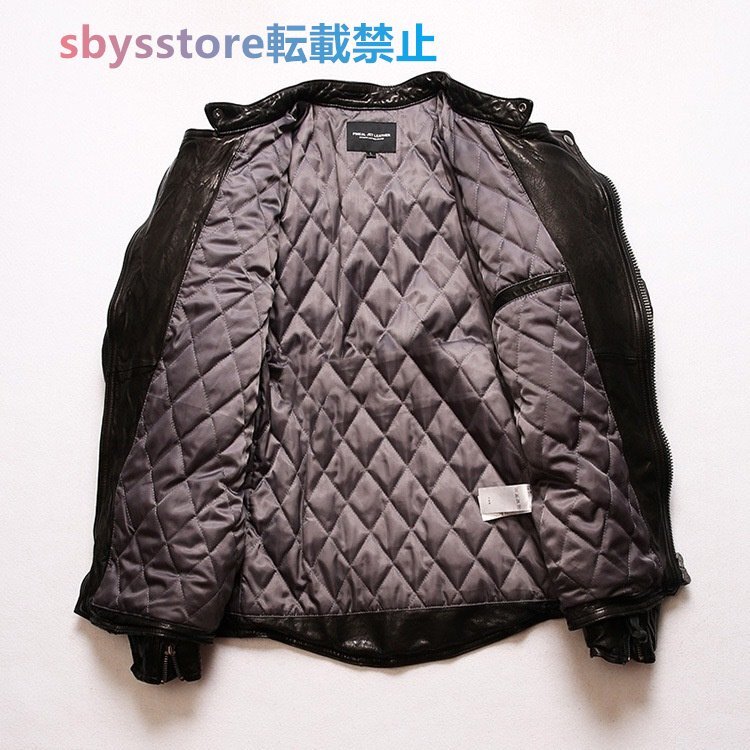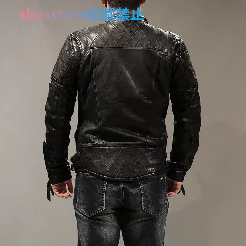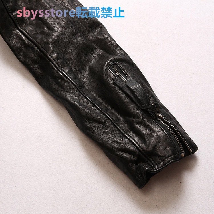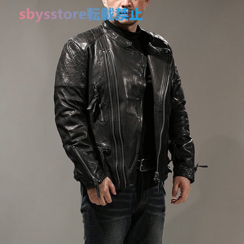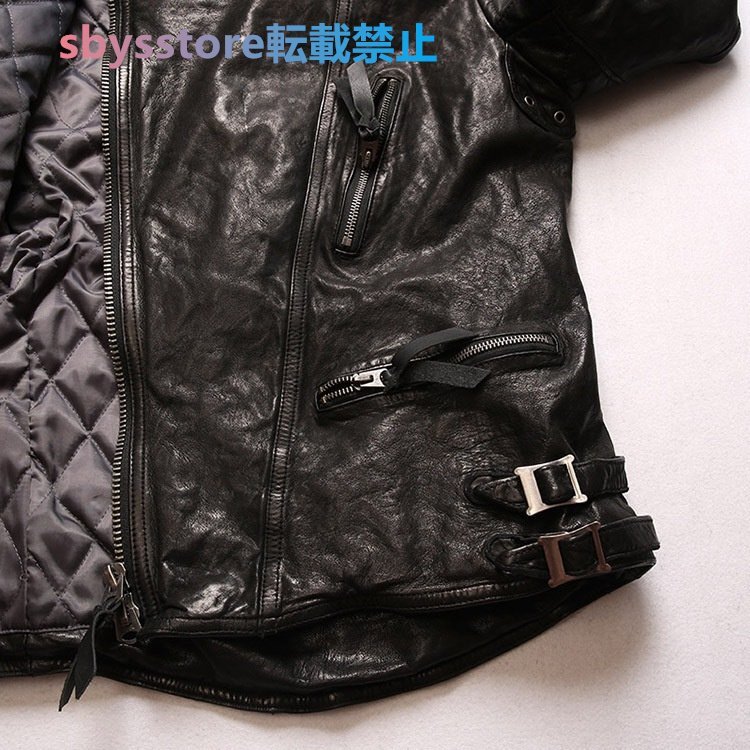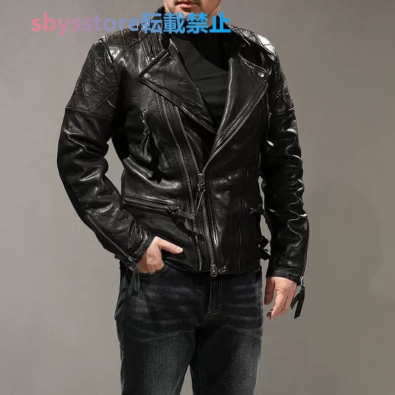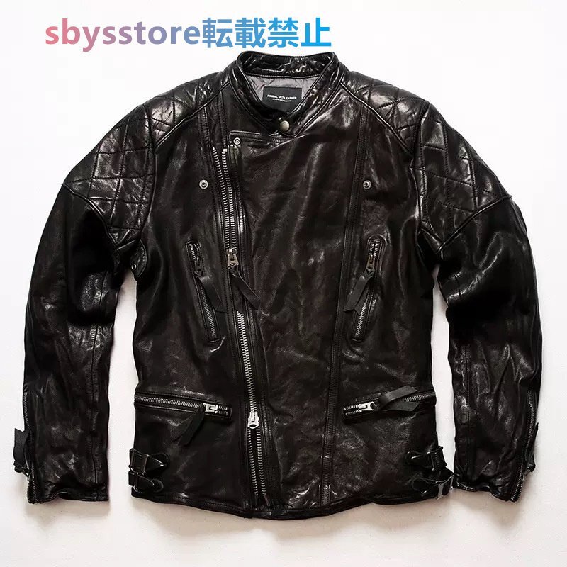 ベジタブルタンニン鞣し羊革ライダースジャケット ダブル斜めジッパー仕様 本革レザージャケット(Lサイズ)