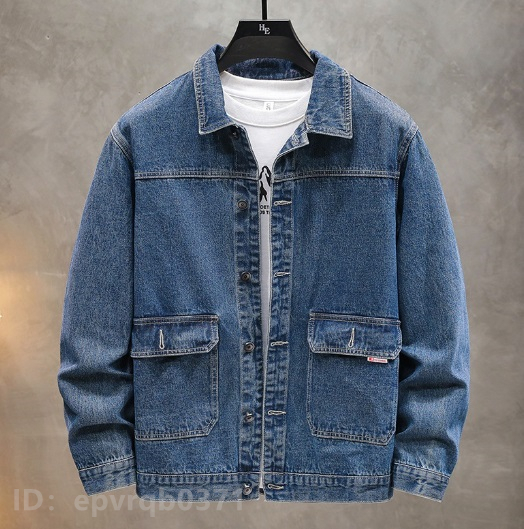 ジージャン※新入荷 メンズ デニムジャケット ゆったり シンプル 長袖 折り襟 紳士 トップス アウター サイズ選択可能 青/XLサイズ