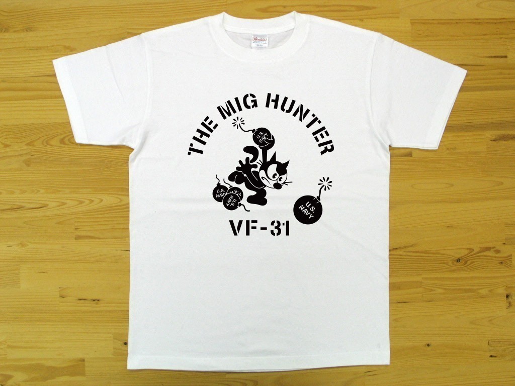THE MIG HUNTER 白 5.6oz 半袖Tシャツ 黒 S ミリタリー トムキャット VFA-31 U.S. NAVY VF-31