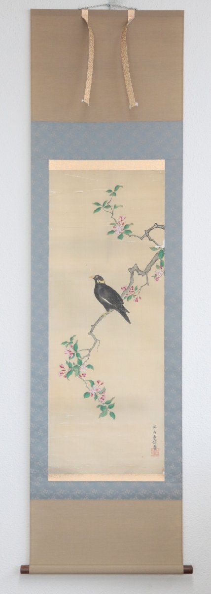 【模写】『狩野愛信』洞白 駿河台狩野家五代目「花鳥」絹本軸装 掛軸 書画 日本画