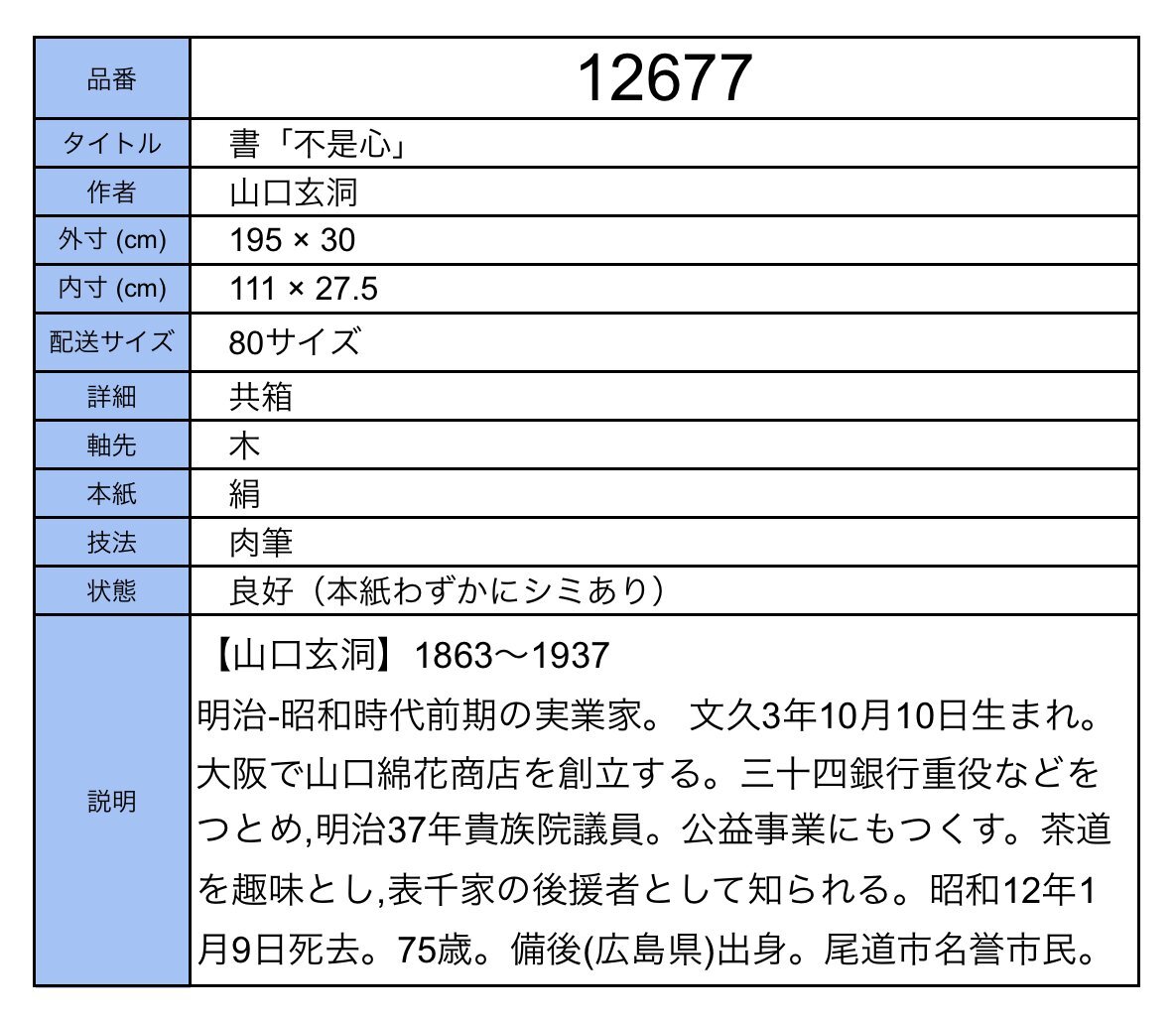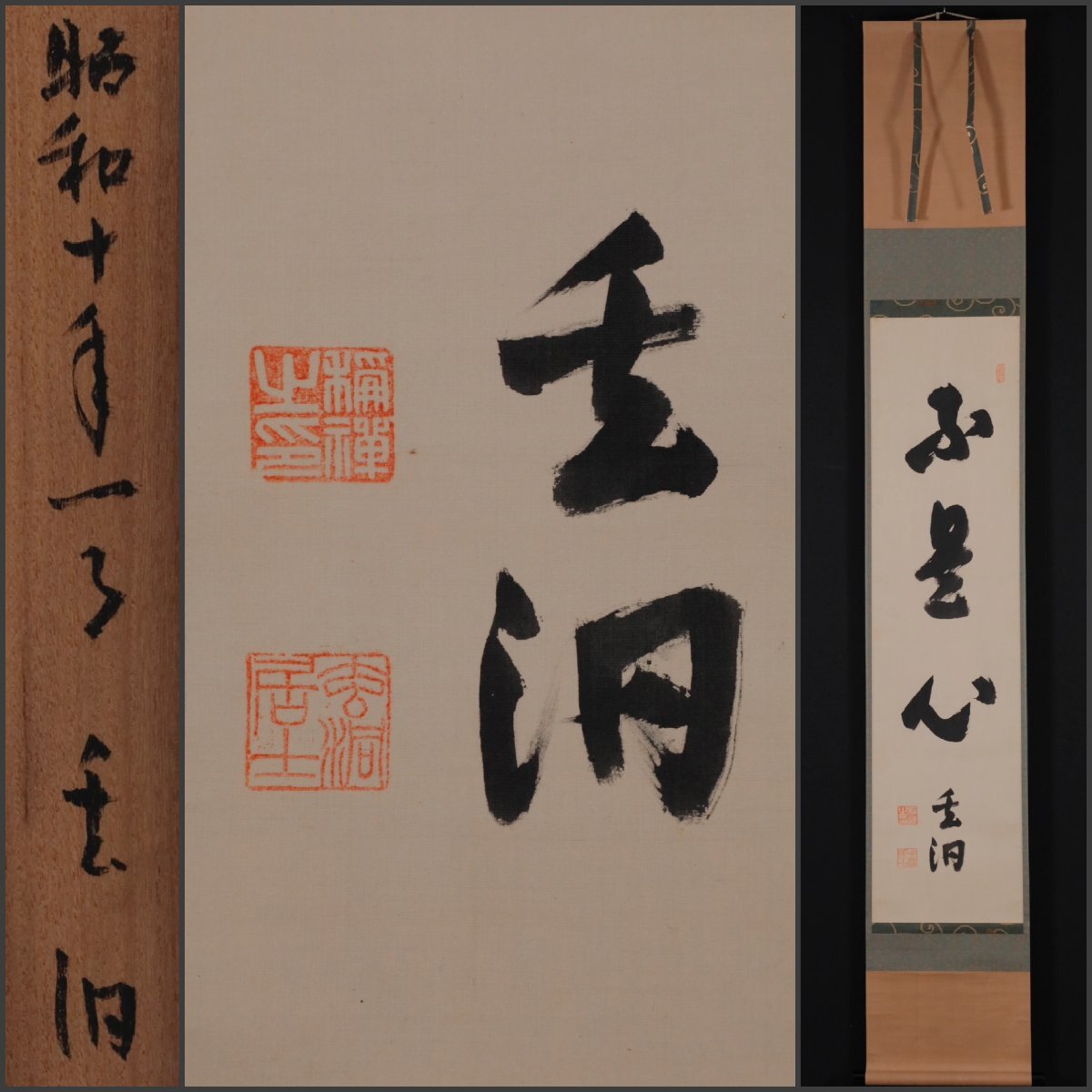 【模写】吉】12677 山口玄洞 書「不是心」 共箱 三十四銀行重役 実業家 備後 広島県 尾道市 仏教 茶掛け 茶道具 掛軸 掛け軸 骨董品
