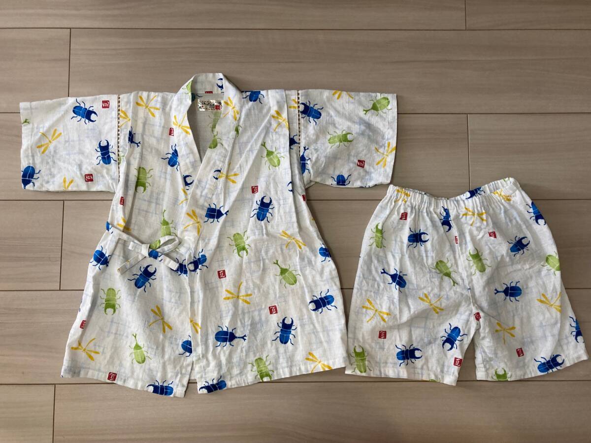 子供 甚平 110サイズ 綿100% キッズ 昆虫 男の子 女の子