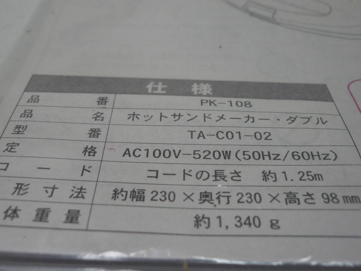 未使用株式会社タマハシ パーソンズホットサンドメーカーPK-108【V-337】送料無料(北海道沖縄離島佐川急便中継料金がかかる地域は除く)