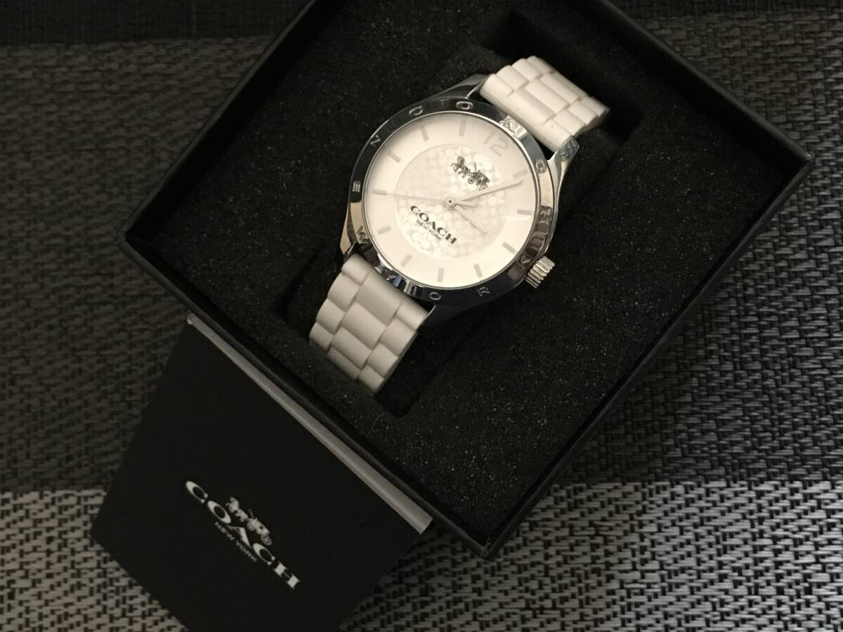 アクセスありがとうございます。 メンズサイスですがデザイン的に女性でもお使いになれると思います。使用感はほとんど感じないきれいな状態ですがあくまで新品でもおそらく完全な未使用でもないと思いますので見落としがあり得ることをご理解ください。 ■商品名: COACH/コーチ メンズ 美品 クオーツ ■動作: 稼働 ■ケースサイズ: 素人採寸 約36㎜(リューズ含む) ■外観コンディション: 時計本体および純正ラバーベルトともに主観では全体的に使用感のないいきれいな状態だと思います。 ■付属品: 純正箱 | |||||||||||||||