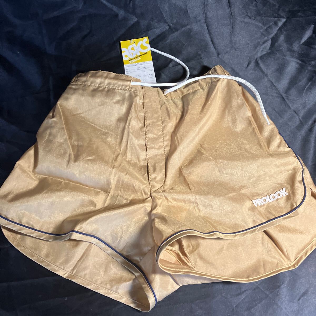 M38 asics PF-012 ショートパンツ Sサイズ ゴールド 新品未使用品 スポーツ ランニング ◎刺繍ロゴ入り