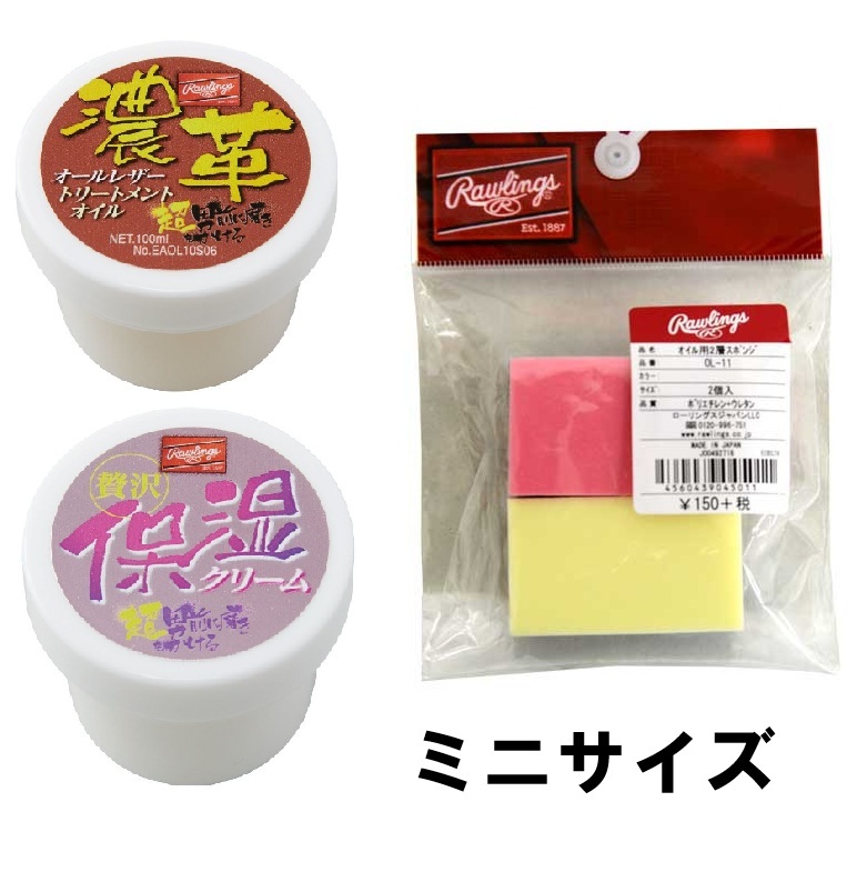 ミニ ローリングス Rawlings 野球 グラブ グローブ ミット 濃革 オールレザー トリートメント オイル スポンジ 贅沢保湿クリーム 軟式 硬式