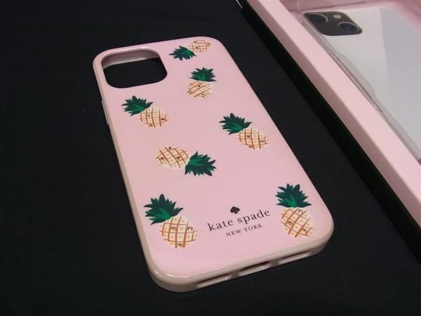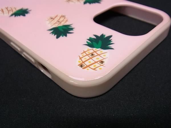 ■美品■ kate spade ケイトスペード ポリウレタン ラインストーン パイナップル柄 iPhone13 対応 アイフォンケース ピンク系 DE8460