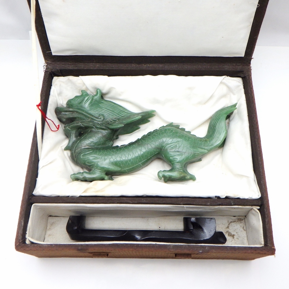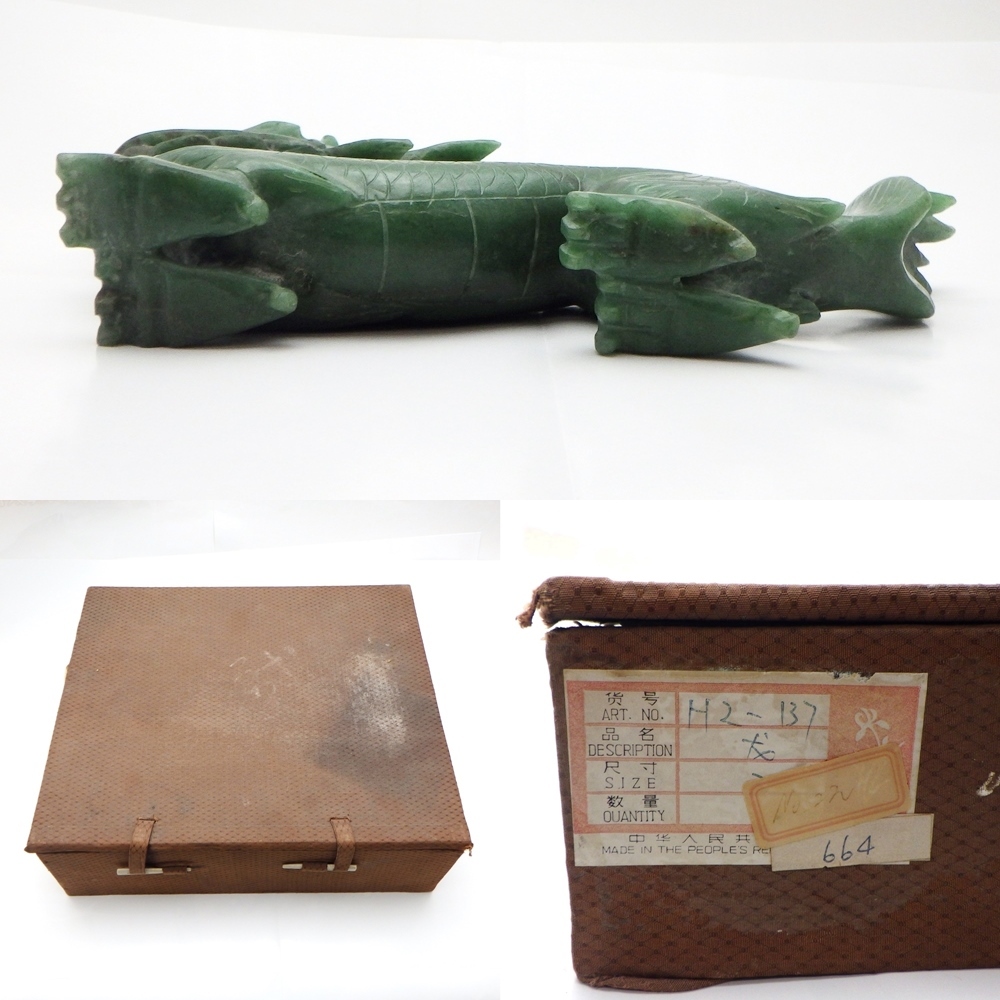 SI-40 中国 龍 竜 置物 石? 台座つき 箱 輸入雑貨 アンティークショップ保管品 デッドストック ヴィンテージ インテリア