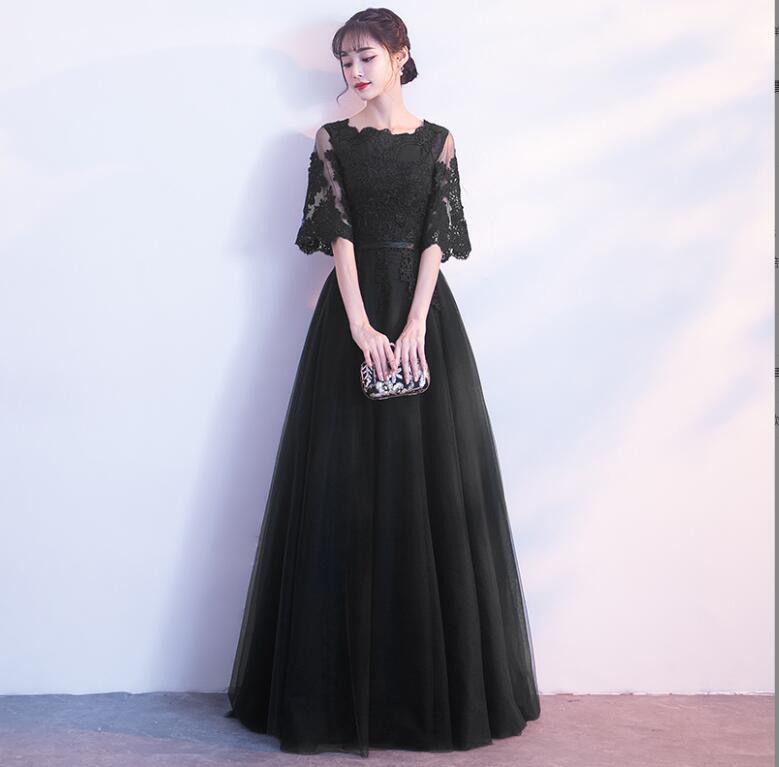 新入荷上質 厚手/美品二次会/パーティー/演奏会/舞台/撮影/カラー黒+レース/チュールロングドレス