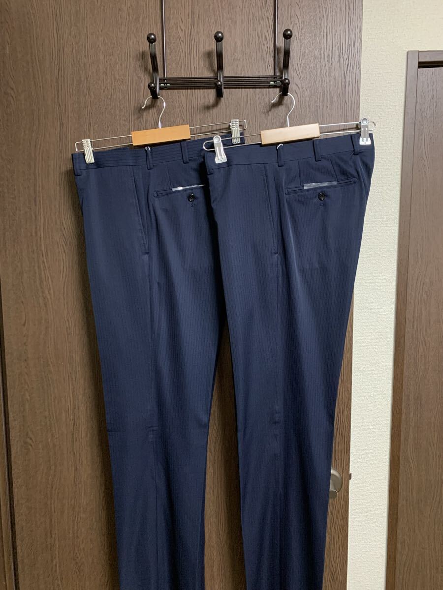 ネイビー無地調シャドーストライプ2パンツスーツ!