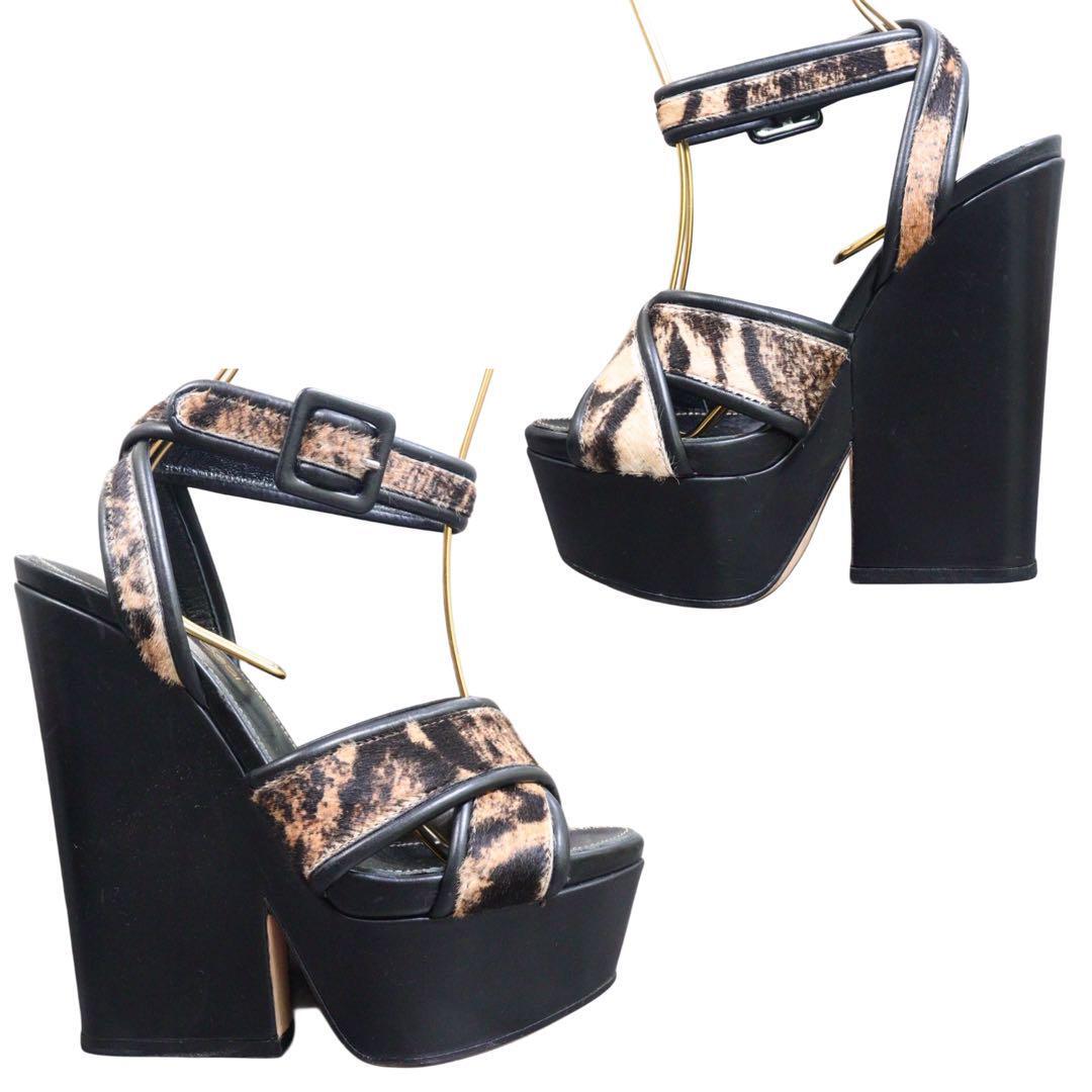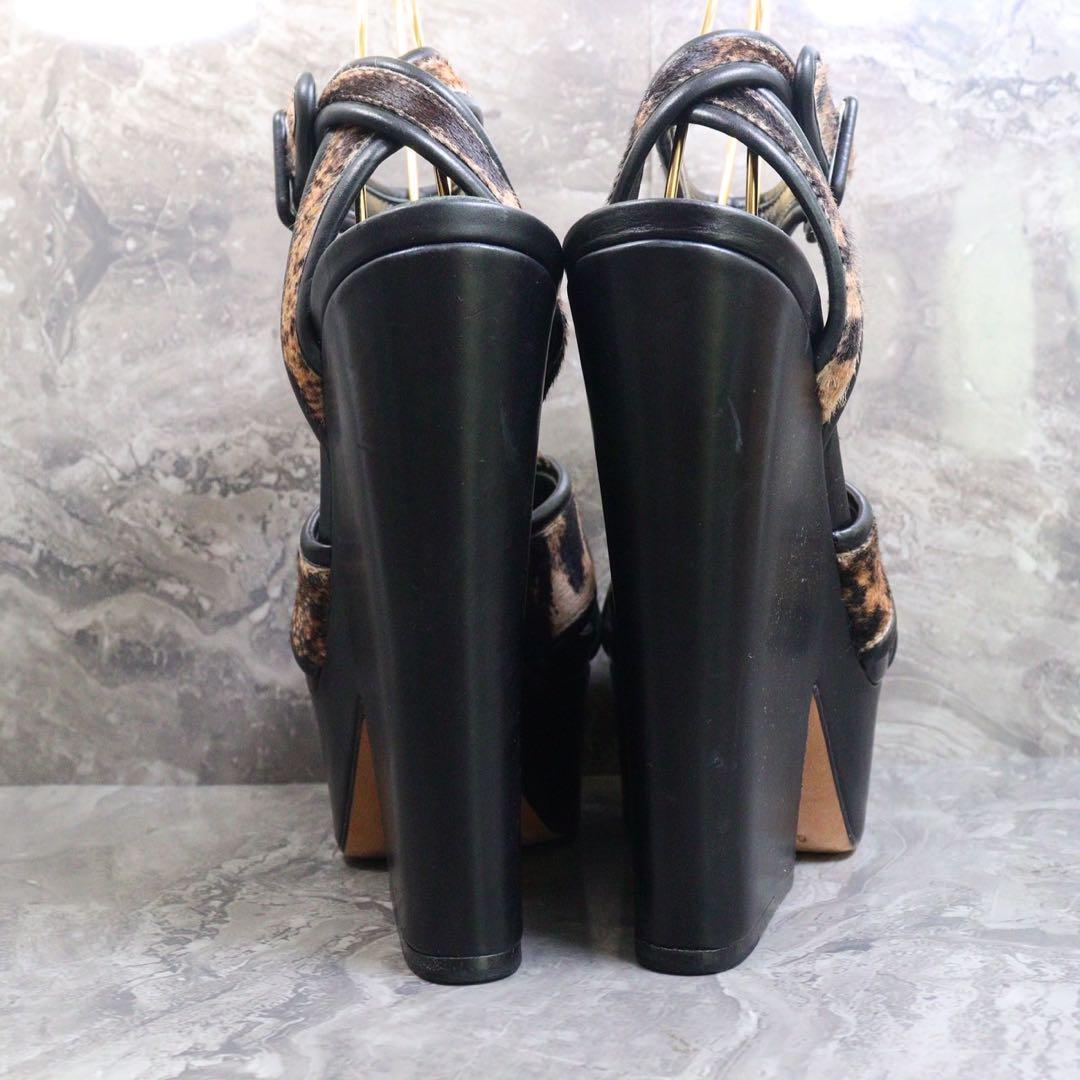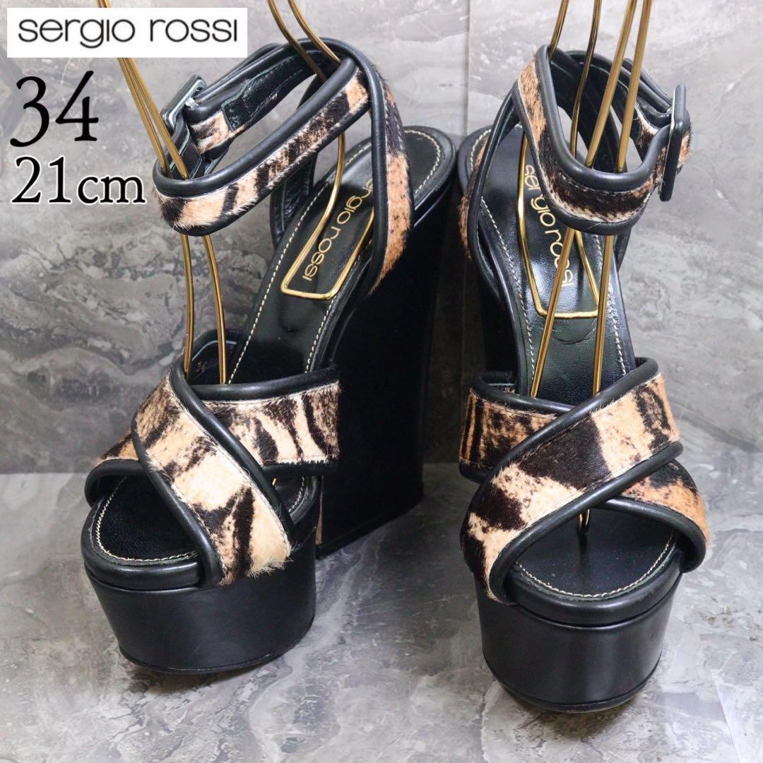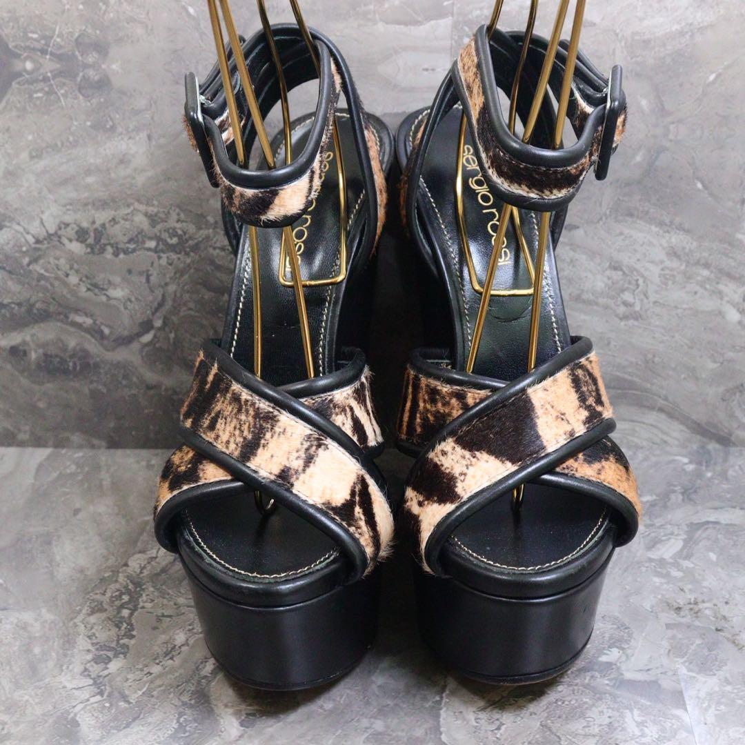 Sergio Rossi セルジオロッシ ハイヒール サンダル アニマル柄 ハラコ ベルト 黒