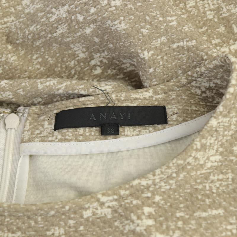 アナイ ANAYI フレアワンピース ひざ丈 総柄 半袖 38 ベージュ 白 ホワイト 15518-06-11-380 /RO レディース