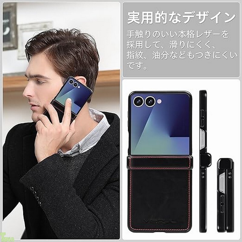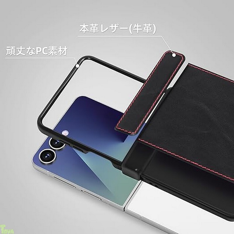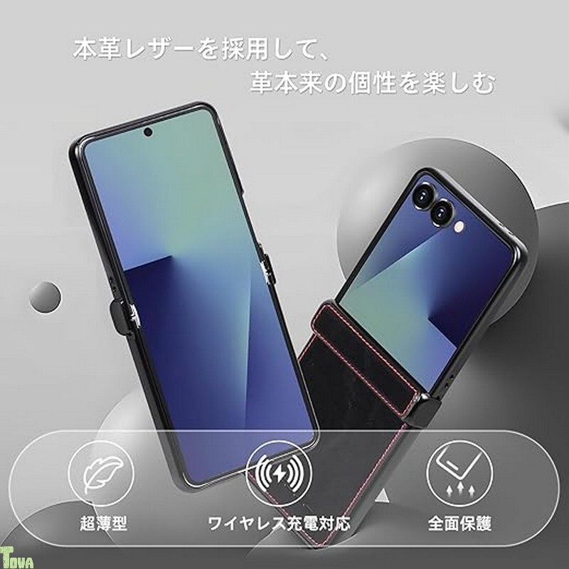 ブラック 薄軽量 ワイヤレス充電対応 エイジングを楽しめる 高品質 本革 ギャラクシーフリップ Galaxy Z Flip 7 保護 ケース カバー