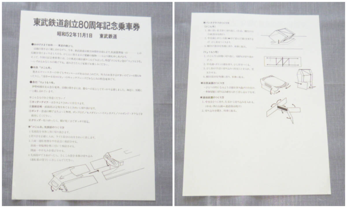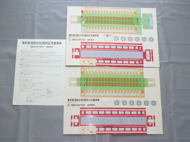 記念切符★東武鉄道創立80周年記念乗車券★急行りょうもう号セット★昭和52年11月1日★1217