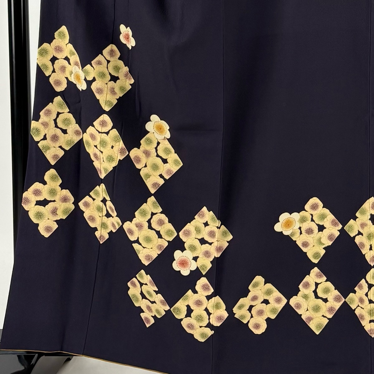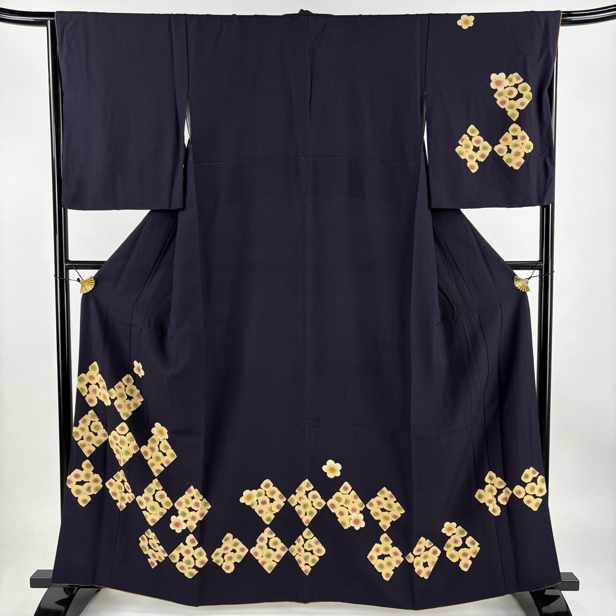 | 付下げ 秀品 やまと 梅 菱 縮緬 濃紫 袷 身丈161.5 裄丈66 M 正絹 【中古】 |