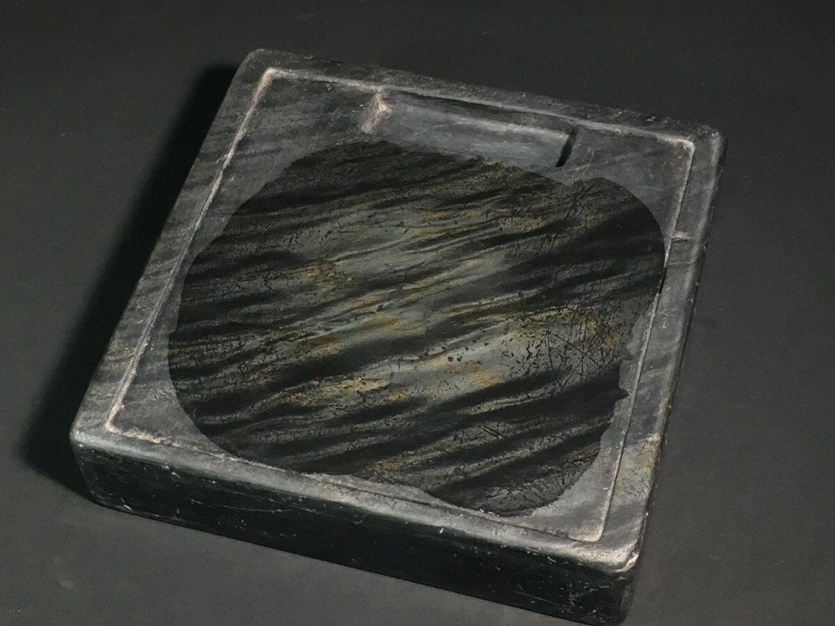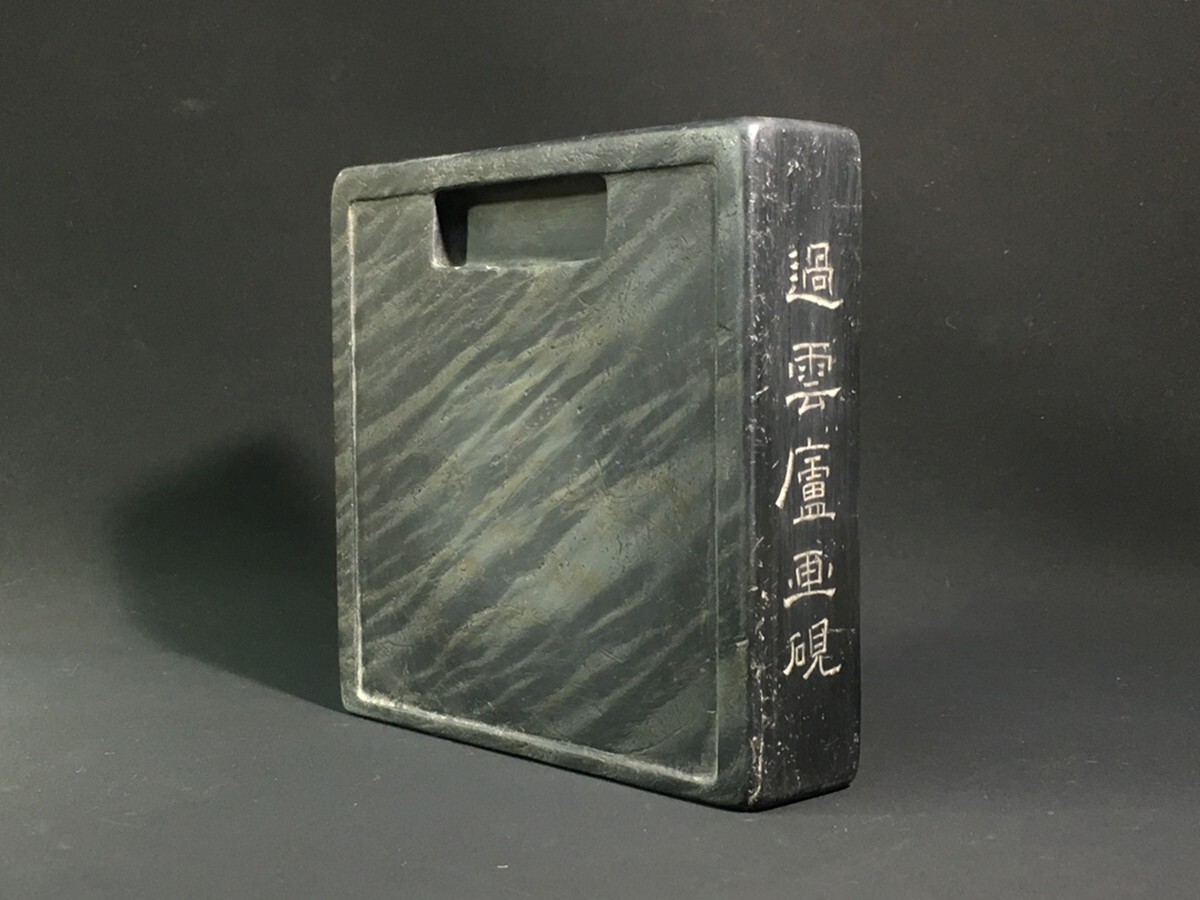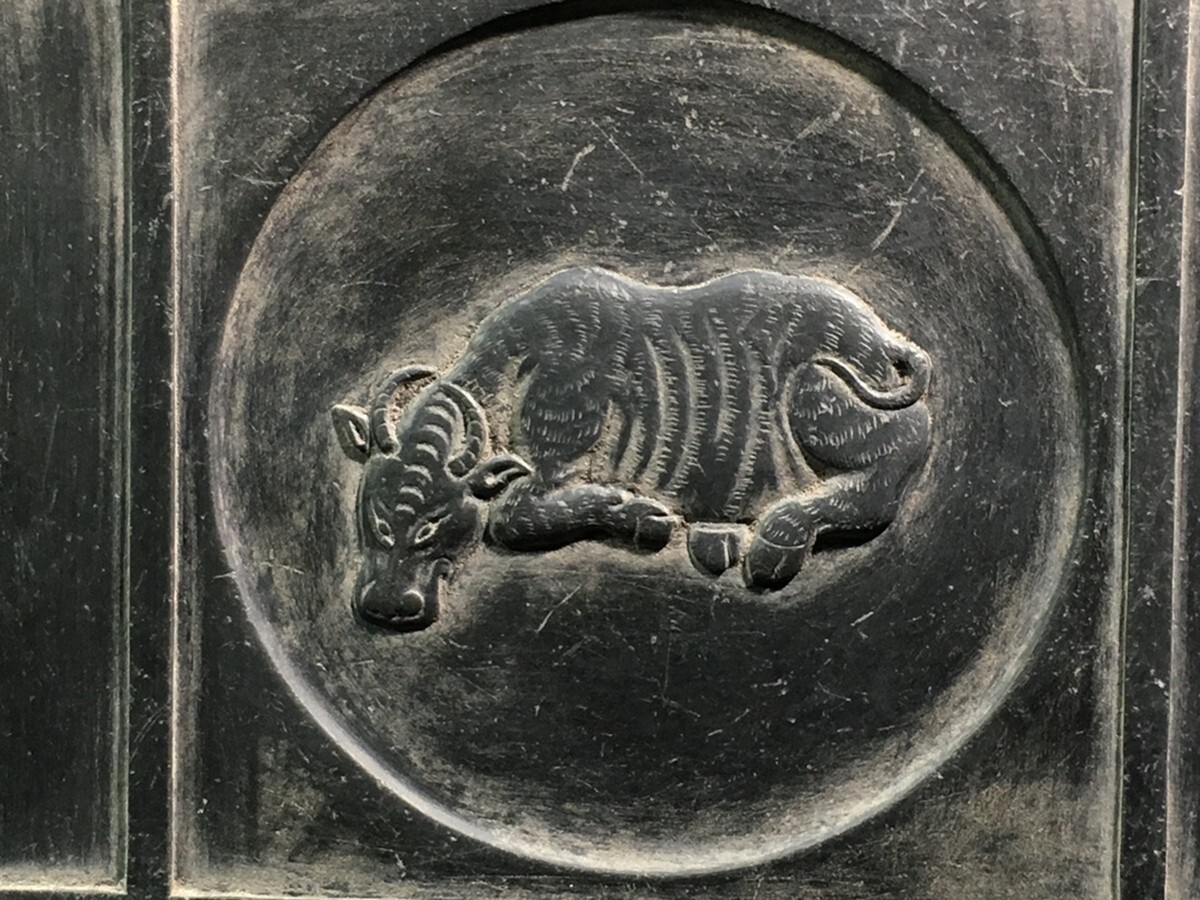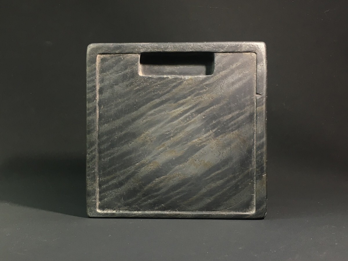 清代 老坑眉紋歙石彫 臥牛図文房歙硯 芝山作銘【仁】手彫り 文房具 書道具 中国古硯 蔵出 骨董