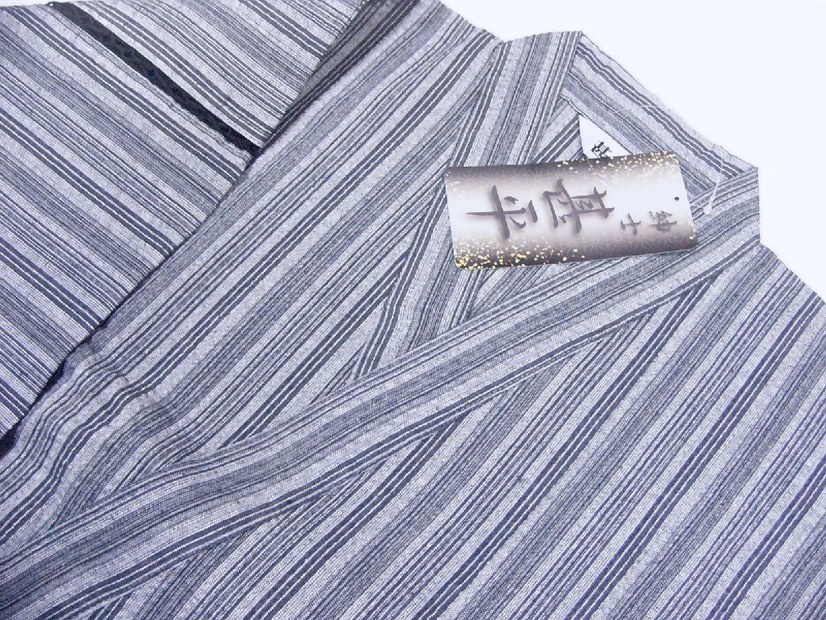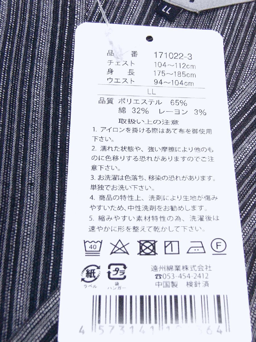 アウトレット 暑い夏には 涼しげな甚平 グレー色地縞模様 LLサイズ 未使用品